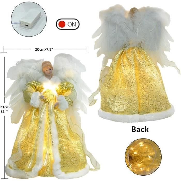 Conçue pour être polyvalente, cette figurine d'ange fonctionnant à piles sert de point fort décoratif pour les vacances et les événements. Conçue pour être polyvalente, cette figurine d'ange fonctionnant à piles sert de point fort décoratif pour les vacances et les événements. Convient pour la cime des arbres, il améliore les espaces intérieurs et extérieurs comme les salons, les jardins et les zones commerciales Parfait pour les mariages, les fêtes et les festivals, son charme de ferme enrichit les porches, terrasses, balcons et cours avec un style sans effort. En raison des différentes mesures manuelles, veuillez prévoir une différence de 1 à 2 cm. Large adoption : avec une silhouette d'ange classique, cette décoration de sapin sur le thème festif enrichit les décorations de vacances dans les cafés, les halls, les maisons et les espaces de vente au détail avec une polyvalence inégalée Ange Doré LED Décoration Noël Cimier De Sapin Ange De Noël Or - Boule Et Déco De Sapin Ange Cime Sapin Piles AA Décor Festif Caractéristiques : Nom : lampe décorative en forme d'ange., Couleur : doré. Cimier de sapin accrocheur : ce sommet de sapin dispose de LED lumineuses qui émettent une chaleur douce, attirant l'attention avec des détails réfléchissants et devenant un point culminant indispensable pour votre thème de décoration de vacances Design ange sécurisé : la silhouette d'ange précisément proportionnée s'adapte aux arbres de Noël standard avec une compatibilité optimisée, offrant un placement sûr et stable qui ajoute une touche de grâce à vos fêtes saisonnières Matériaux : métal, ABS. Cimier de sapin de Noël en forme d'ange, 30 cm avec lumière LED télécommandée, décoration de sapin de Noël lumineuse, statue cadeau de Noël pour la maison (B Contenu : 1 décoration de sapin ange. Transformez votre sapin en véritable chef-d’œuvre de Noël avec notre Cimier de sapin de Noël lumineux Ange. Ce cimier resplendissant apportera une touche magique à votre décoration