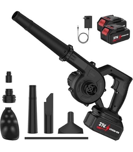 600W Aspirateur Souffleur Broyeur de Feuilles pour Le Balayage des Souffleur Bosch 18v Souffleur Portable Sans Fils à Batterie, Souffleur à Feuilles Électrique Compatible Avec Makita 18V, Souffleur à Feuilles à Main Pour Patio, Gazon, Poussière De Voiture (Non Pile-Rouge Souffleur à Batterie 【recevrez 】 1*souffleur de feuilles, 1*chargeur, 1*sac à poussière, 1*tube de collecte d'air, 2*têtes d'aspiration, 1*conduit d'air souple, 2*tubes de raccordement Bénéficiant d'un volume d'air maximum remarquable de 3,3 m³/min et d'un incroyable 23 000 tr/min, ce souffleur de feuilles électrique sans fil s'attaque sans effort même aux débris les plus tenaces. De plus, avec deux batteries, non seulement la durée de fonctionnement sera prolongée de 100 %, mais en utilisant deux batteries de manière interchangeable, chaque batterie peut avoir une usure réduite. Souffleur Batterie 21V, 600W souffleur Feuilles avec 2× 4,0Ah Batterie, 3.3m³/Min / 23,000r/Min, 2 in1 Souffleur de Feuilles sans Fil pour Neige, Jardins, Cour, Feuille (1*Pile 【Poignée antidérapante】cet Souffleur Batterie est adapté pour une utilisation à une seule main. Souffleur de Feuilles sans Fil avec Batterie et Chargeur 21V 2.0mAh... Il adopte un corps ergonomique, naturellement façonné dans le sens du soufflage, réduisant l'état de fatigue de l'utilisateur de 40 %, vous offrant non seulement un effet antidérapant pendant le travail, mais facilitant également votre travail. Éliminez facilement les feuilles, la saleté et autres accumulations de votre cour, de vos pelouses et de vos espaces extérieurs., 【2x4., 0AH Batteries】 Souffleur de Feuilles sans Fil avec 2 * 4., 0AH batteries et chargeur, Deux batteries ont une autonomie allant jusqu'à 60 minutes.