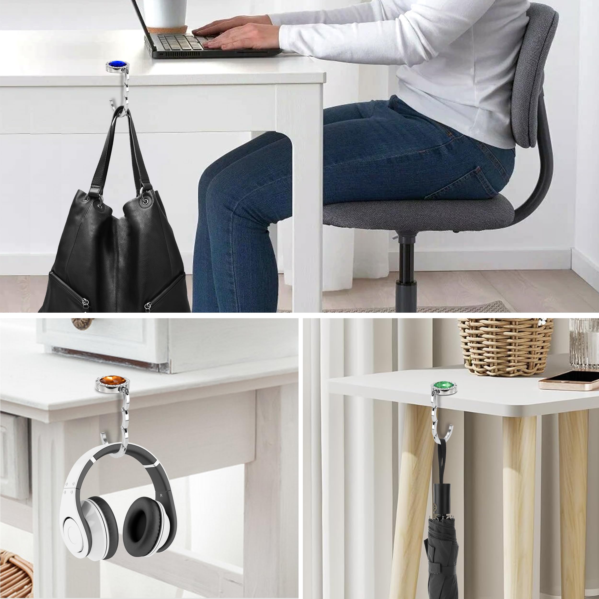 Utilisations multiples : le support de sac de bureau peut être utilisé pour accrocher et fixer des portefeuilles, des sacs à main, des colliers, des écouteurs et d'autres articles. Ouvrez le crochet, placez le plâtre noir face vers le bas sur la table et accrochez le sac au crochet. MINI-PORTABLE : Grâce à sa taille compacte, porte sac à main table peut être facilement placé dans votre sac et emporté partout. Lorsqu'il n'est pas utilisé, le support peut être facilement plié et rangé dans un organisateur pour économiser de l'espa Porte-Sac Portable Sans Agrafes Table suspension sac à main , sans perçage, adhésif ni outil auxiliaire requis, prêts à l'emploi, adaptés aux utilisations... Il peut être utilisé n'importe où autour d'une table, comme dans les bureaux, les cafés, les hôtels, etc., Cafés, hôtels, etc. Porte-Sac pour Table, XiXiRan Crochet de Table Pliable Élégant, Porte De plus, ce support de sac de bureau peut également être utilisé comme cadeau spécial pour les femmes. Simple et à la mode : le porte-sac a une apparence argentée élégante et les patchs antidérapants noirs donnent aux crochets un aspect unique et élégant. Porte Sac à Main Table 4 Pièces ,Crochet De Sac à Main Anti Derapant Accroche Sac A Main Pliable Pour Table Creatif Accroche Sac A Main Pour Table Pour Restaurants Cafes Ecoles 91939966 Crochet Sac Table Votre sac ne sera pas piétiné ni sali, vous pourrez toujours le voir et les voleurs n'auront aucune chance. Lorsqu'il n'est pas utilisé, le support peut être facilement plié et rangé dans l'organiseur pour économiser de l'espace. Conception antidérapante : le bas du support de sac adopte une conception antidérapante, une forte adhérence pour éviter de glisser de la table, et le revêtement en caoutchouc léger protège la table sans laisser de traces ni l'endommager.