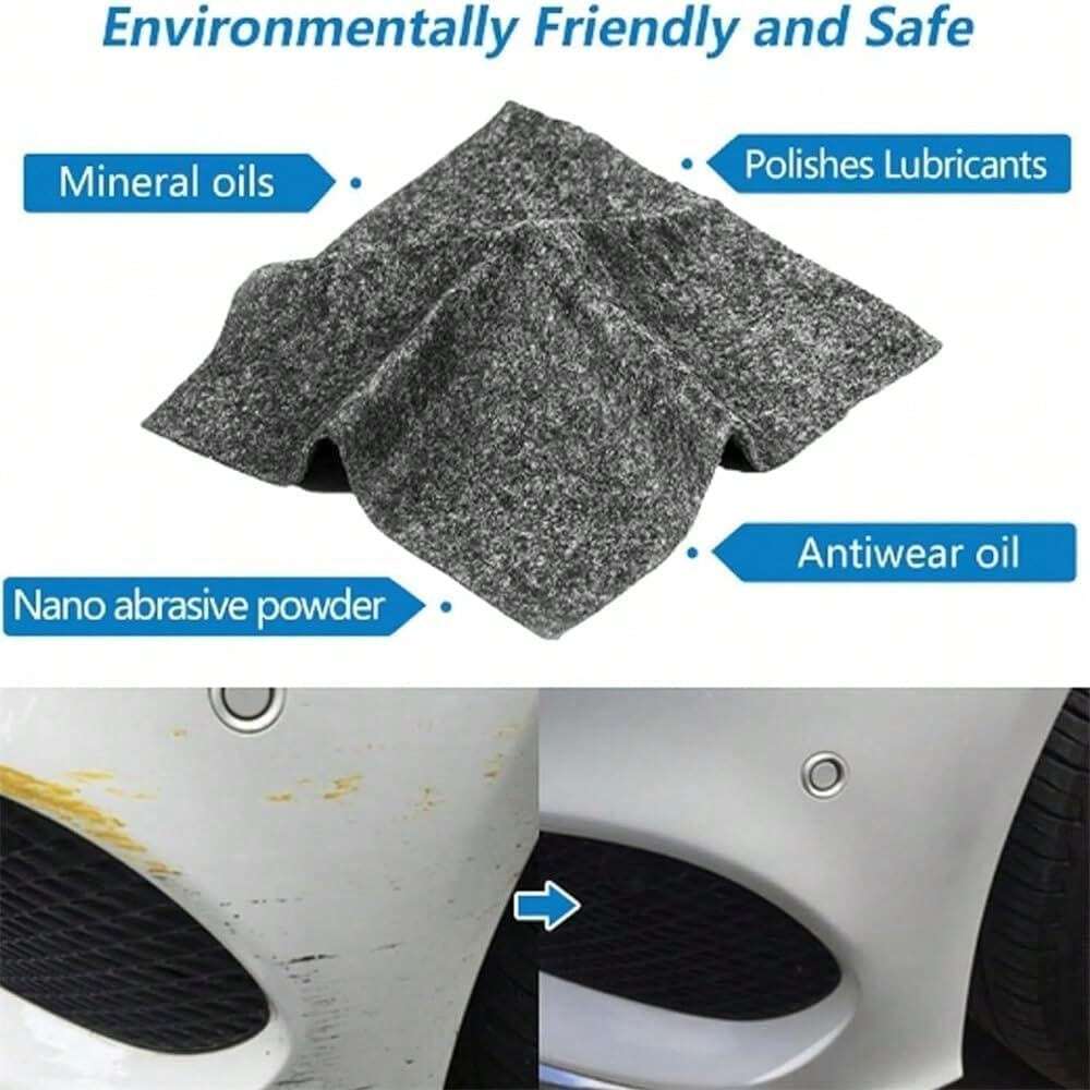 【Convient à toutes les couleurs de véhicules】 Le chiffon anti-rayures nano est indépendant de la couleur et peut être utilisé sur toutes les couleurs de peinture automobile, qu'elles soient claires ou foncées. Nano anti-rayures avancé pour voiture : notre dernier chiffon nano est parfait pour toutes les couleurs de voiture, faisant disparaître les rayures et les tourbillons tout en restaurant l'éclat d'origine de votre voiture Caractéristiques: ✔ Matériau : Matériau nano-fibre de haute qualité (non abrasif) ✔ Couleur : Noir (usage universel) ✔ Taille : 10 x 20 cm (voir les images du produit pour référence) Contenu de la livraison : ✅ 8 x chiffons de polissage Nano (suffisants pour 8 à 12 applications) Mode d'emploi : 🔧 C'est aussi simple que ça : Préparation : Assurez-vous que la surface est sèche et sans poussière. 【Multifonctionnel – Plus qu'une simple suppression des rayures】 En plus des rayures, le chiffon élimine également l'oxydation de la peinture, le goudron, la rouille, la saleté, les fientes d'oiseaux et autres résidus tenaces. En cas de dommages profonds sur la peinture ou de rayures jusqu'à l'apprêt, nous vous recommandons de vous rendre dans un atelier spécialisé. Il convient uniquement au traitement des rayures superficielles légères. ⚠ Informations importantes : Ne pas laver – affecte le revêtement nano Uniquement pour les rayures superficielles légères (pas de dommages profonds à la peinture) Avant de tester sur une zone peu visible (surtout avec des peintures foncées) Nanowipe Chiffon anti-rayures pour voiture Outil de Frottez ensuite le chiffon nano sur la rayure en effectuant des mouvements circulaires. Entretien : Enlever l'excédent de matière avec un chiffon en microfibre. Il aide à restaurer la brillance et la couleur d'origine de votre véhicule. Test du kit efface rayures rapide Meguiar’s Chiffon Anti-rayures Voiture Efface Rayure Lot De 8 Chiffons Nano Anti-Rayures Pour Voiture, S Rapide Nano Sparkle Cloth Avis Kit Réparation Carrosserie Sans Polissage 【Nano Sparkle Cloth - Élimination efficace des rayures】Notre Nano Sparkle Cloth utilise la dernière technologie nano pour l'entretien de la voiture et élimine efficacement les rayures fines, les marques d'ongles, les rayures de branches, les taches de sable et autres dommages mineurs à la peinture.