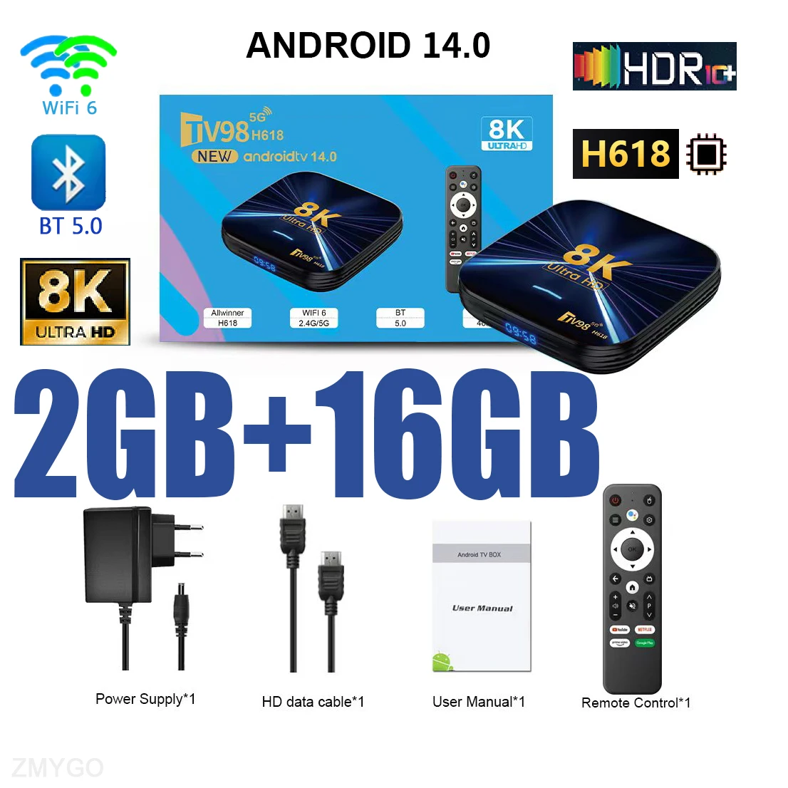 Le nouveau système Android 14 prend en charge les mises à niveau en ligne directes (OTA). R69 Plus Android 14 TV Box 2GB 16GB EU Plug 【2 Go 16 Go et USB 3., 0】 : la TV Box Android 14., 0 est livrée avec 2 Go de RAM et 16 Go de ROM, ce qui est parfaitement adapté pour regarder des vidéos, participer à une variété d'activités divertissantes et naviguer sur le Web. WIFI6 fournit un signal WiFi rapide de haute qualité pour profiter de jeux et de films. La lumière néon qui s'allume lorsque vous l'allumez transforme votre salon en un espace de divertissement rempli de technologie pour le meilleur divertissement home cinéma. Box Tv Android 14 4k 8k Android 14.0 TV Box 2025 4GB RAM 32GB ROM WIFI6 1000M Ethernet Android 14 TV Box 4K 8K HDR10 R69 Plus H728 Octa-core 3D Smart TV Box Supports 2.4G 5.8G Dual WiFi Android Tv Box 2025 16 Go de ROM assure un fonctionnement fluide et sans décalage, ce qui améliore la bonne expérience d'utilisation quotidienne. Écran d'accueil et commande vocale personnalisés : cette boîte TV intelligente prend en charge l'écran d'accueil personnalisable. L'assistant vocal à télécommande peut facilement exécuter vos commandes vocales. La box TV prend également en charge l'extension supplémentaire des périphériques USB, carte TF de 128 Go, disque dur de 1 To et autres périphériques de stockage 2025 New Android TV Box Streaming R69 Plus 8k H728 Quad Core WiFi 6 et Ethernet 1000 m : cette box TV prend en charge le double WiFi 2,4 G + 5,8 G et l'Ethernet 1000 m. Reliable Internet Connection: The combination of dual-band Wi-Fi 6 (2.4G/5G) and 100M Ethernet port provides an ultra-stable network connection to stream 4K streams without buffering, even during peak hours