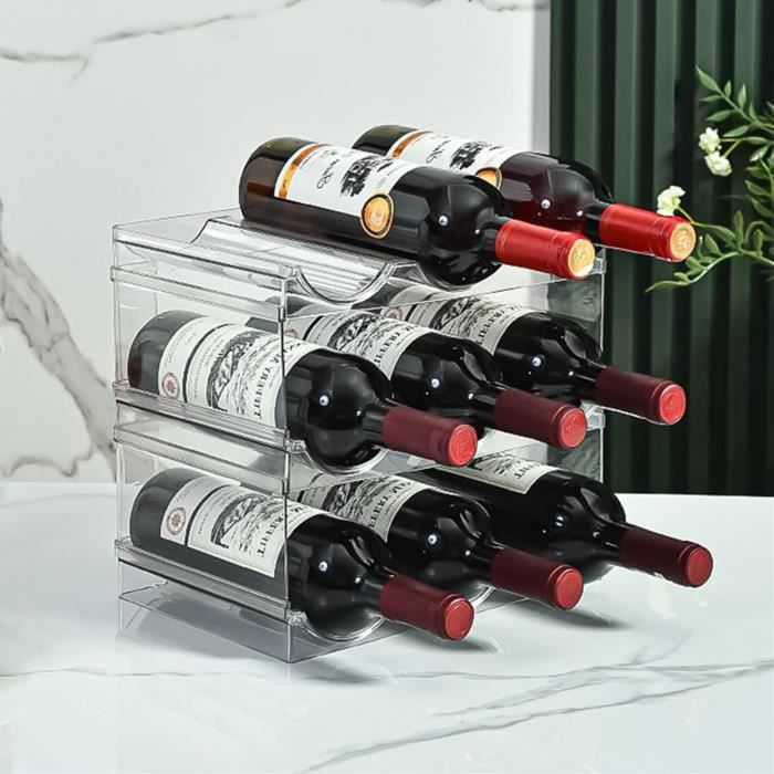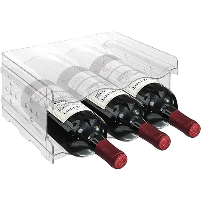 Stackabilité optimale --- Les deux niveaux empilables offrent un espace de stockage flexible et peuvent être étendus ou réduits, selon les besoins pour sadapter parfaitement à votre réfrigérateur. Nettoyage et soins faciles --- La surface lisse du support de bouteille permet un essuyage sans effort sans effort avec un chiffon humide et cest comme neuf. Robuste et durable --- En plastique transparent de haute qualité, cet organisateur de bouteille est particulièrement stable et durable, de sorte quil conserve également des bouteilles lourdes en toute sécurité. Support 2 étages 3 Bouteilles Par Niveau Range Bouteille Casier À Vin Pour 8 Bouteilles Stable En Bois De Pin Couleur Naturelle 445 X 255 X 165 Cm 89997458 Casier à Bouteilles 2 étages Transparent Organisation et style maximum --- Notre porte-bouteille transparent pour le réfrigérateur offre de lespace pour jusquà 6 bouteilles (2 étages de 3 bouteilles) et assure un stockage clair de vin, deau ou dautres boissons et de réduction de lespace Principaux points forts · Marque. Geoyien · Couleur. Transparente · Taille. 34 x 19,8 x 18,3 cm · Matériau. Plastique · Dimensions du produit. 34P x 19,8l x 18,3H... Lot de 6 organiseurs de bouteilles de vin et d'eau, empilables en