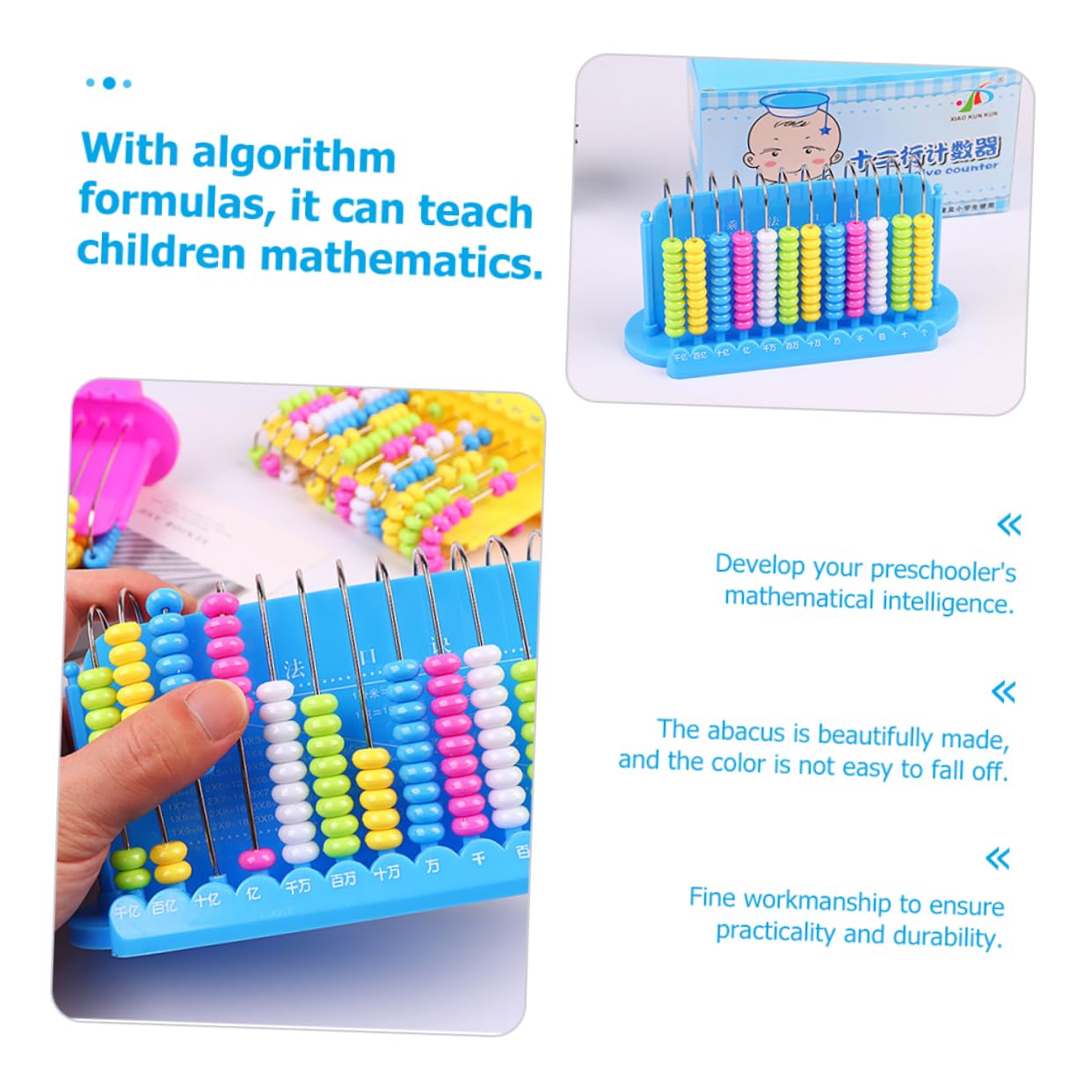 12 tiges comptant des bouliers - les bords arrondis des perles ne vous feront pas mal aux mains. Bouliers à 12 chiffres - style dessin animé, également adaptés à la collection, décorez votre bureau, salon, salle d'étude, etc. avec le logo chinois, les enfants peuvent apprendre le chinois en apprenant les mathématiques. Un Garçon Apprend Les Mathématiques Et Le Comptage à L'aide D'un Boulier | Vecteur Premium Bouliers arithmétiques en perles : le processus de polissage fin du boulier garantit des coins et des surfaces arrondis, vous donnant un toucher lisse. Un Garçon Apprend Les Mathématiques Et Le Comptage à L'aide D'un Boulier | Vecteur Premium Boulier Plastique Coloré Apprentissage Outil Comptage éducatif Compact Boulier Éducatif VICASKY - 12 Tiges - 18,5x10 Cm - Vert - Apprentissage Calcul Enfants Outil Mathématiques Scolaire Jouet Mathématique Enfant Plastique Changyeah Comptabilité - Boulier spécial - Outil de calcul d