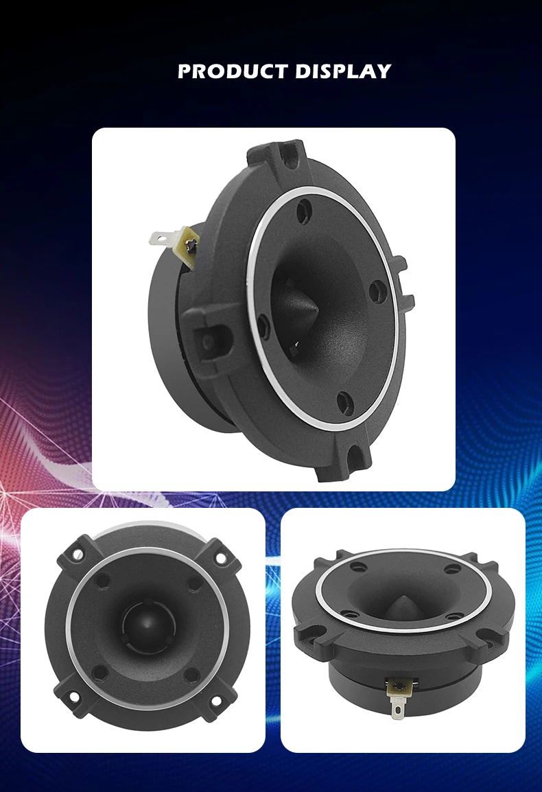 Comprend un filtre de condensateur en ligne pour réduire la distorsion en limitant les basses fréquences. La bobine mobile Kapton haute température de 1 pouce et le diaphragme en aluminium sont conçus pour prendre la puissance nécessaire pour maintenir et maintenir la clarté cristalline. Les super tweeters Recoil sont conçus avec un cadre en aluminium moulé sous pression pour garantir un son de qualité et un jeu durable dans la plupart des environnements. Super Tweeters Haute Compression RECOIL Super Tweeters De Voiture à Haute Compression TW250 Tweeters Pour Installation SPL Haute Puissance Recoil Les super tweeters sont conçus avec un cadre en aluminium moulé sous pression pour garantir un son de qualité et un jeu durable dans la plupart des environnements bobine mobile haut-parleur 25.5mm 4 ohms bobine cuivre sur support... Skar Audio VX200-ST Lot de 2 tweeters à haute copression en aluiniu