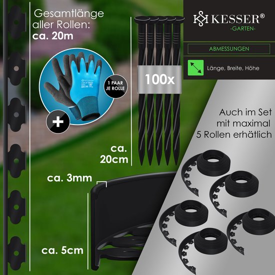 Grâce à l'utilisation flexible, vous pouvez créer des courbes, des coins et des angles de 90 ° avec la séparation car nos bordures de gazon peuvent être pliées. Points forts du produit : Longueur : 30 m - Hauteur : 5 cm - Épaisseur : 3 mm - Longueur des clous : 10 cm - Matériau : PolyethylenTemperaturfest: -50°C bis +50°CWetterbeständig: Oui Contrairement aux bordures en métal, la bordure de tonte est à peine tranchante ou dure, ce qui protège vous et vos enfants des blessures. Palissade Jardin Ancrage Spirale Sol Bordurette Pelouse Flexible En Plastique 6x50cm - Bordure De Jardin Bordure Souple Jardin Exterieur Cette barrière de protection pour vos fleurs et plantes empêche l'intrusion de l'herbe. Bordure de ligne - Bordure de pelouse flexible - Plastique - 30 chevilles - Longueur: 10 m Il suffit de couper la bordure à l'endroit souhaité, de sorte qu'à la fin, vous ayez la longueur idéale pour votre jardin. Contenu : 1 bordure de gazon de qualité supérieure , 150 clous en spirale Un autre atout est la finition simple, ce qui est possible sans utilisation de machines de construction ou de béton. Étant donné que les bords en plastique sont plus flexibles que les bordures de parterre en métal et en pierre, ce matériau convient à tous les jardins et toutes les délimitations. Comme fait pour des délimitations courbes, il est très simple et rapide à mettre en forme. 𝐂𝐀𝐑𝐀𝐂𝐓É𝐑𝐈𝐒𝐓𝐈𝐐𝐔𝐄𝐒 𝐌𝐀𝐓É𝐑𝐈𝐄𝐋𝐋𝐄𝐒: Le plastique possède les propriétés idéales pour votre nouvelle bordure de pelouse, car il est durable et ne rouille pas. Bordure de jardin fabriquée dans un matériau très solide, résistant aux intempéries. Extrêmement flexible, elle vous permet de réaliser la forme de vos rêves et de créer des arrangements magnifiques et uniques dans votre jardin Matériau de qualité supérieure Le plastique a les caractéristiques appropriées pour votre nouvelle bordure de pelouse, car il est durable et ne rouille pas. Faites un chemin ou séparez votre pelouse proprement du parterre, avec la bordure de gazon KESSER c'est un jeu d'enfant. 𝐅𝐋𝐄𝐗𝐈𝐁𝐄𝐋: La bordure de pelouse en plastique est excellente pour créer des bordures de parterre, des contours de parterre et des limites de parterre. Flexible La bordure de pelouse en plastique est idéale pour la création de bordures de parterres et de bordures de parterre. Bordure de gazon KESSER Étant donné que les bords en plastique sont plus flexibles que les bordures de parterre en métal et en pierre, ce matériau convient à tous les jardins et toutes les délimitations Protection idéale Il aide à protéger les plantes contre les dommages et à garder les racines loin de votre parterre. Ensuite, vous pouvez rouler proprement le long du bord de la tondeuse avec la tondeuse à gazon, tout en évitant d'endommager la lame de coupe. En outre, il est plus facile à installer et a un poids beaucoup plus faible que si vous optez pour une bordure de pelouse en pierre ou en métal. Le plastique a les caractéristiques appropriées pour votre nouvelle bordure de pelouse, car il est durable et ne rouille pas. 𝐏𝐀𝐑𝐅𝐀𝐈𝐓𝐄 𝐄𝐓 𝐒Û𝐑𝐄: Conçue pour les délimitations courbes, elle s'adapte parfaitement et rapidement à la forme désirée. Moulable et sûr Comme fait pour des délimitations courbes, il est très simple et rapide à mettre en forme. 1 manuel d'utilisation (français non garanti) Détails techniques : Longueur : 30 m - Hauteur : 5 cm - Épaisseur : 3 mm - Longueur des clous : 10 cm - Matériau : PolyethylenTemperaturfest: -50°C bis +50°CWetterbeständig: Oui Avec d'autres délimitations, vous pouvez agrandir votre parterre à volonté sans avoir à enlever les bordures de pelouse préalablement posées. Que ce soit pour la pelouse, le parterre, le béton ou la pierre et les surfaces de gravier, le bord peut être utilisé de manière universelle. La bordure de pelouse en plastique est idéale pour la création de bordures de parterres et de bordures de parterre. Cette barrière de protection pour vos fleurs et plantes empêche la pénétration de l'herbe et vous évite ainsi une grande partie du jardinage et vous permet de vous détendre parfaitement dans votre jardin par beau temps. Comme les bordures en plastique sont plus flexibles que celles en métal et en pierre, ce matériau convient à tous les jardins et à toutes les délimitations.
