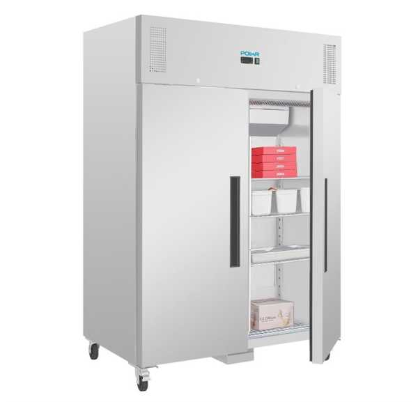 PRATIQUE : Le thermostat digital DIXELL permet un contrôle précis de la température pour s'adapter aux exigences spécifiques de stockage. PROFESSIONNEL : La classe énergétique A, associée au gaz réfrigérant R290 respectueux de l'environnement, réduit la consommation d'énergie, contribuant ainsi aux économies. Équipée de quatre roulettes, dont deux avec freins de 100 mm de diamètre, elle offre une facilité de déplacement et de positionnement. Frigo professionnel inox 2 portes négative 1400L L2G disponible sur GRANDE CAPACITE : Avec 15 niveaux de grilles GN2/1 mm, cette armoire peut accueillir jusqu'à 33 bacs de 4 L, offrant un espace généreux pour le stockage des produits pâtissiers, tout en assurant une conservation efficace. ARMOIRE 200 LT NÉGATIVE INOX - Climafroid équipement Restauration Classe A Armoire Réfrigérée Inox GA1410BT – 1300L, -18°C/-22°C, Froid Ventilé, Classe B Congelateur Coffre 300l Type 1300L Format GN 2/1 Hauteur (mm) 2090 Profondeur (mm) 875 Largeur (mm) 1420 Puissance (W) 270 Nombre de portes 2 portes Eclairage LED Dégivrage Automatique Réfrigérant R-290 Groupe Au dessus Classe énergétique B Plage de température -18°C / -22°C Construction Inox Pieds Sur roues Serrure Oui Thermostat Digital Réfrigération...