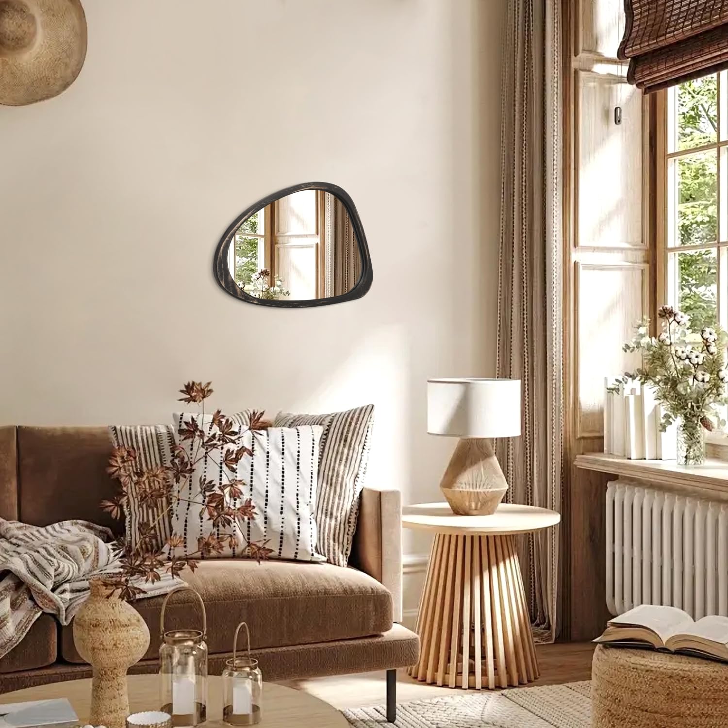 HLFMVWE Miroir asymétrique pour mur avec cadre en bois irrégulier - Miroir mural moderne et unique - Miroir décoratif pour salle de bain, salon, chambre à coucher, entrée, couloir - Grand miroir Cadre en métal brossé : miroir mural irrégulier moderne avec cadre en aluminium décoratif élégant et irrégulier unique, fabriqué en alliage d'aluminium solide, s'adapte au style de votre maison, ajoute un élégant miroir de haute qualité à votre maison Miroir Salon Chambre DWELLER Miroir Irrégulier Pour Décoration Murale 91,9 X 68,8 Cm, Miroir Asymétrique, Miroir Mural Moderne Sans Cadre Pour Salle De Bain, Chambre à Coucher, Entrée, Salon, Coiffeuse Miroir Cadre Métal Il peut non seulement servir de miroir mural, mais aussi de miroir de décoration d'intérieur. Un merveilleux ajout pour attirer l'attention de vos invités et obtenir plus de compliments Installation facile : les crochets pré-installés à l'arrière du miroir irrégulier, il suffit d'utiliser les vis et d'aligner les trous de suspension à l'arrière, peut facilement être accroché au mur de la salle de bain principale, du salon, de la chambre ou du couloir d'entrée, c'est très simple Miroir mural 76,5 x 56 cm pour salle de bain miroir mural de courtoisie... Miroir Mural Décoratif Asymétrique sans Cadre - Miroir Forme Irrégulière, Miroir Table pour La Décoration La Chambre À Coucher, Miroir Courtoisie en Forme Nuage (45x55 Le miroir de salle de bain irrégulier fabriqué en verre trempé ne déformera pas l'image sous n'importe quel angle, offrant une réflexion claire sans distorsion S'adapte à la scène : il peut être utilisé comme miroir de coiffeuse ou miroir décoratif pour la chambre, le salon, la salle de bain, le mur de galerie, l'entrée, le salon ou même le magasin. Il peut être accroché au mur ou placé sur une table et est adapté à une variété de styles d'intérieur Miroir à cadre métallique irrégulier Le cadre du miroir de salle de bain est fabriqué en alliage d'aluminium et est très durable et durable.