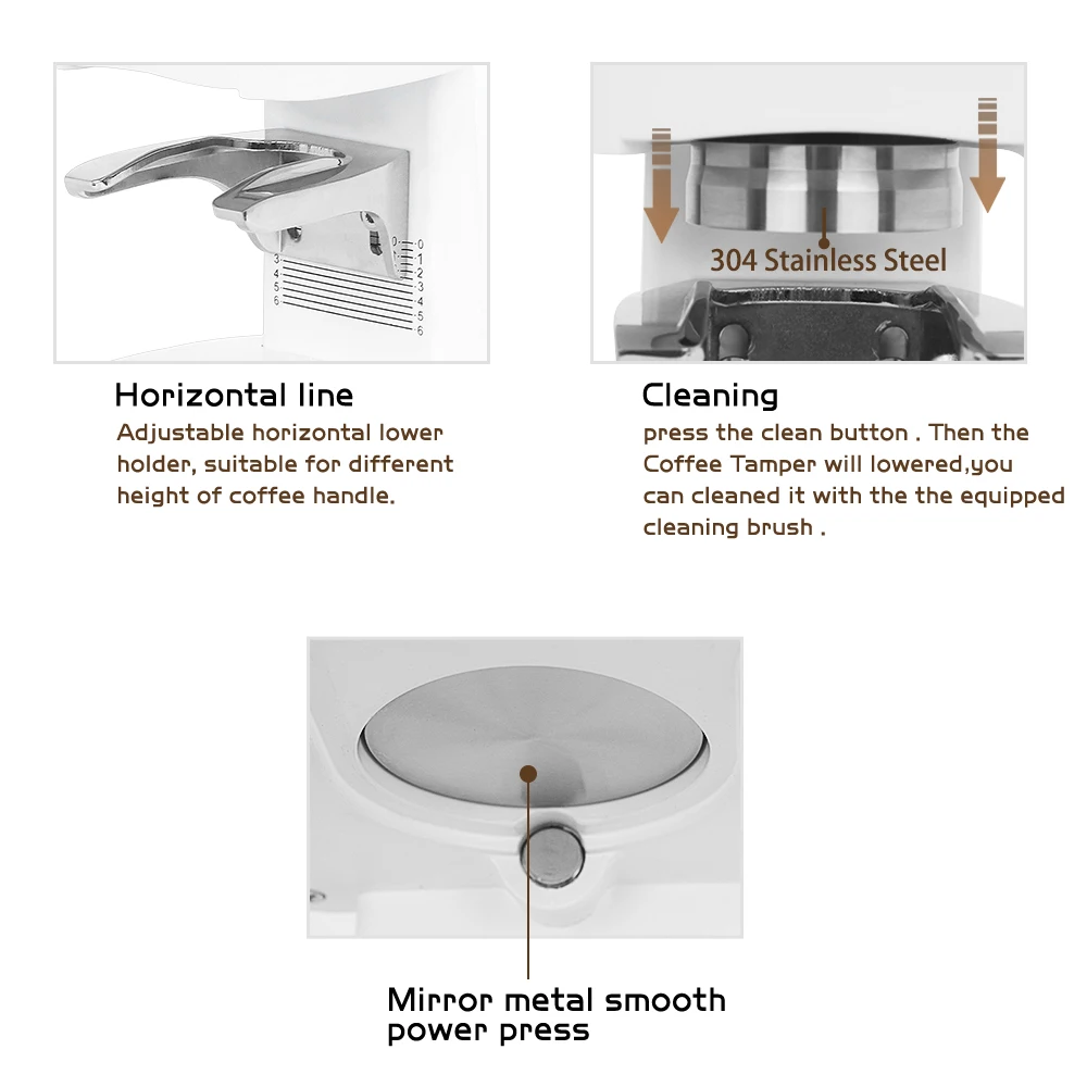 Machine Tassage Café HNBYLMM Tampon à Expresso Automatique De 58mm Avec Remplissage Et Presse Expresso 58mm Pression Réglable Conçue pour les petites cuisines sans compromettre les performances, cette machine légère et robuste allège la tension de vos poignets. Tasseur à Café Cafetière en Acier Inoxydable 304 avec Base Plate... Description de Tasseur à expresso calibré, tasseur à café avec pression réglable de 24 à 35 lbs, à ressorts, 58 mm [Pression de tassage auto-ajustable] Une valve de régulation d'impact intégrée de 24 à 35 livres avec des vis spéciales se trouve à l'intérieur du tasseur Que vous préfériez un expresso intense et corsé ou une tasse plus onctueuse et équilibrée, cette machine vous offre un contrôle total sur votre café. Le système de tassement automatique élimine les mouvements répétitifs, vous permettant ainsi de savourer un café de qualité professionnelle sans fatigue. Tamper à café électrique, 1 à 3 réglages de pression, hauteur 【Profitez de votre café】Oubliez le préchauffage ou l'installation. Profitez d'une tranquillité d'esprit et d'un tassage régulier grâce à notre tasseur à café automatique. Procédure d'utilisation :1., Allumez l'appareil ;2., Réglez la pression selon vos besoins ;3., Pressez la poudre, placez la poignée à l'endroit où la pression est automatiquement détectée ;4., Terminez. 【Contrôle précis de la pression】Ajustez la pression de votre expresso grâce à un réglage complet (de 10 à 30 kg), pour une extraction optimale. (Pression uniforme de la poudre, extraction équilibrée). Le tasseur s'abaisse d'une simple pression sur un bouton pour un nettoyage facile, garantissant une hygiène optimale et prolongeant la durée de vie de l'appareil. 【Base robuste et stable】Le cadre en alliage d'aluminium renforcé assure une stabilité à toute épreuve, éliminant les oscillations et les déplacements pendant la mouture et le tassement. Abonnez-vous dès maintenant et recevez des livraisons régulières pour ne jamais manquer de cette solution de tassage fiable et adaptée à vos besoins en café.