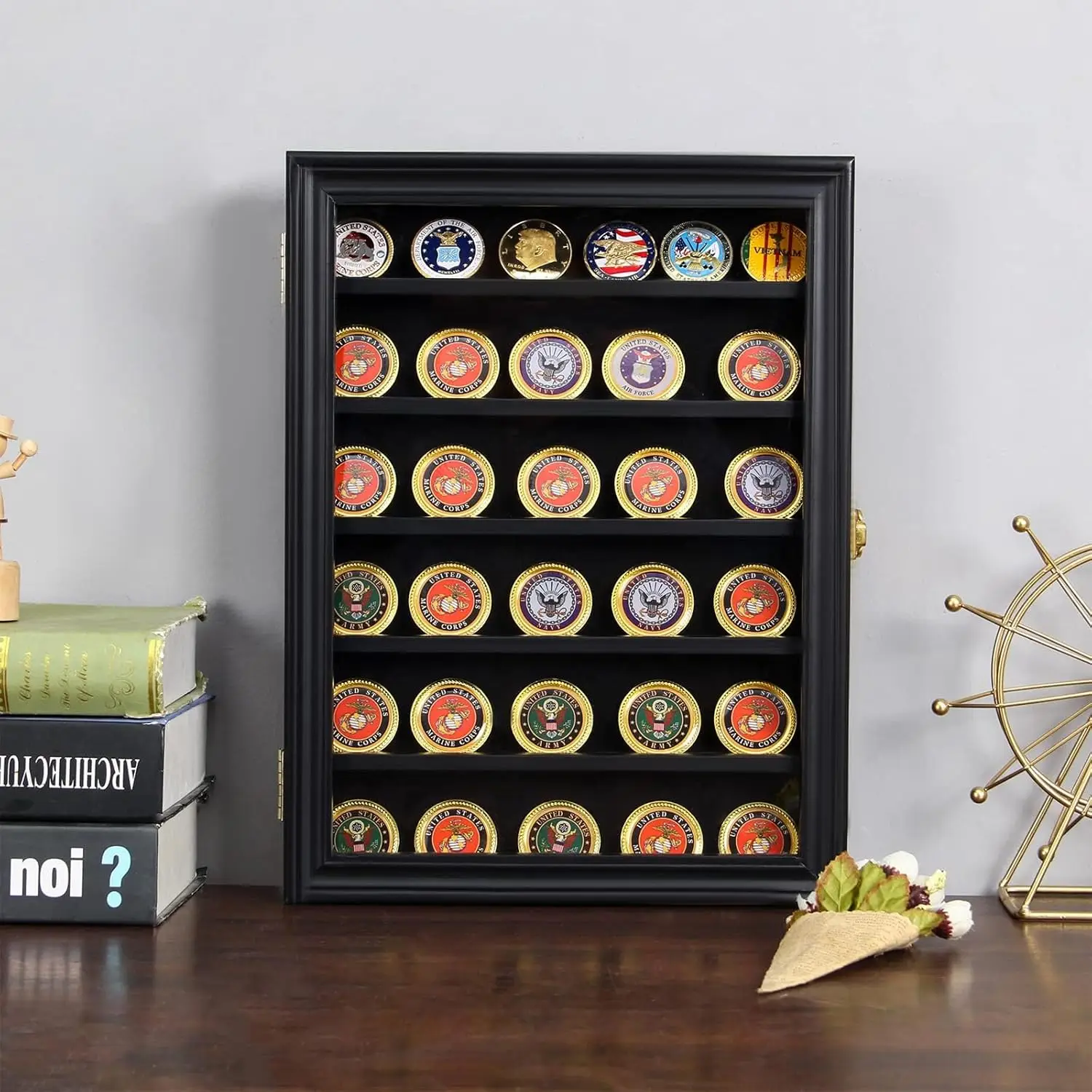 Compartiments ajustables : la structure améliorée des fentes avec plusieurs rainures de séparation vous permet d'ajuster librement la hauteur des compartiments pour une organisation flexible des pièces de collection de différentes tailles Grande capacité : contient 4 séparateurs amovibles à double fente, des rainures plus larges et plus profondes (0,6 x 0,7 cm) pour les pièces plus épaisses, peut contenir jusqu'à 60 pièces de monnaie standard de 1,57 de diamètre (pièces NON incluses) Durabilité : l'étui en bois massif avec fermeture à ressort et doublure en feutre doux offre une protection complète pour vos pièces de monnaie précieuses, médailles, insignes, badges et autres objets de collection Présentoir Jetons Badges Présentoir Mural Pièces Militaires En Bois - Vitrine Collection Médailles | 5 étagères Amovibles Avec Serrure Vitrine Murale Emballage sûr : dimensions extérieures, l'étui est entièrement enveloppé dans un rembourrage en mousse protecteur afin de ne pas être endommagé pendant le transport Verani Présentoir à médailles - Boîte Militaire pour pièces de Monnaie - Présentoir à épingles avec étagères Amovibles et Fond à épingler pour Badges, Rubans, Boutons d'insignes - Taille S - Noir Porte Dossard Et Médaille Running Présentoir Pour Pièces De Collection/Épingles Militaires Porte Medaille Montrez facilement votre collection : le fond en feutre noir vous permet d'attacher vos différents objets de collection tels que des médailles, des épingles, des badges, des rubans, des patchs, des insignes et d'autres articles pour compléter votre boîte à ombres