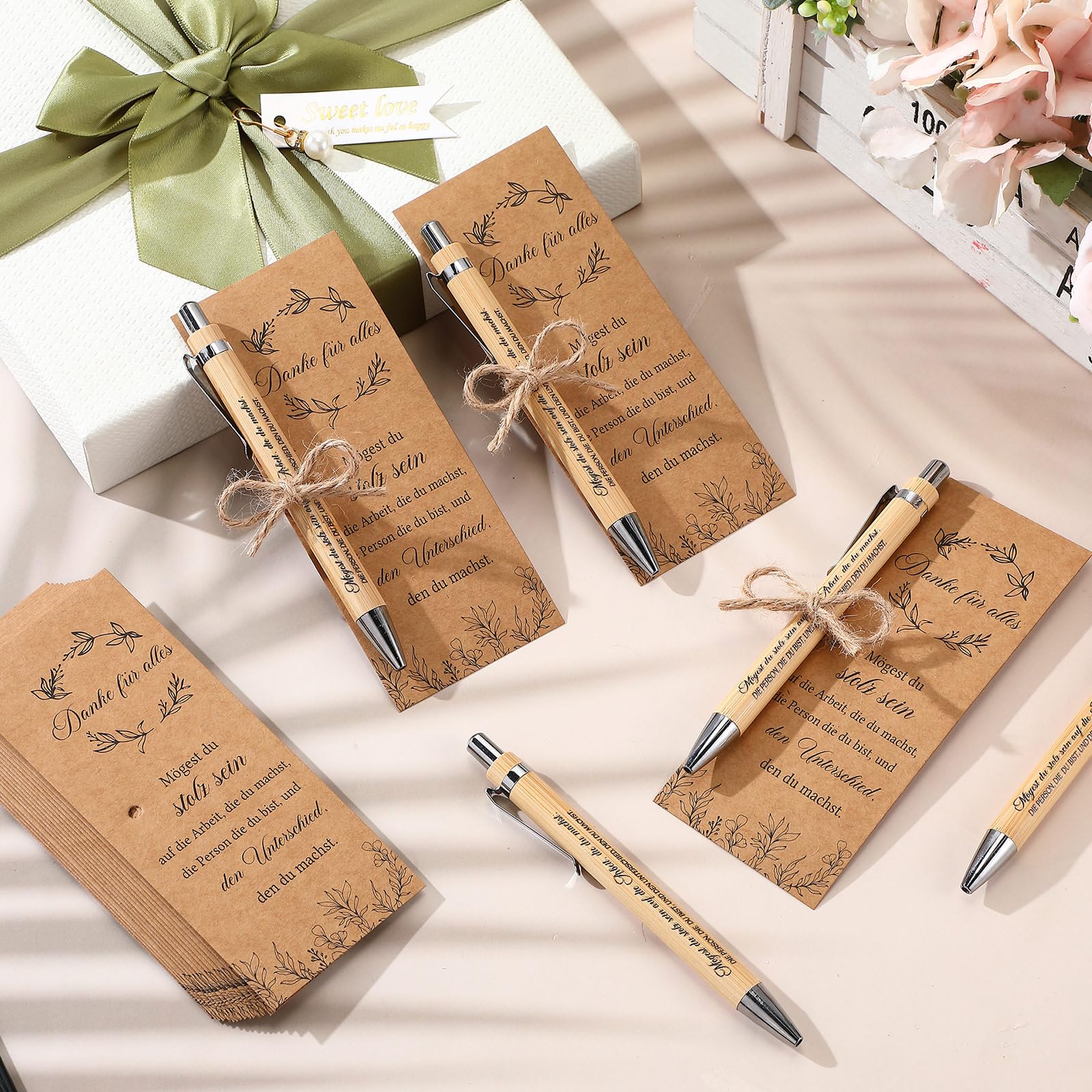 Cadeau de remerciement inspirant. vous aide à choisir le cadeau de remerciement adapté à la personne que vous souhaitez gâter, homme ou femme, selon son âge et ses envies, selon sa personnalité et pour tous les budgets ➤➤➤Cadeaux d'équipe porte-bonheur. Idéal comme cadeau d'invités avec une touche personnelle. Comprend une ficelle de 5 m : cadeaux pour collègues Le kit comprend une ficelle de jute de 5 m pour accrocher les cartes de remerciement, la décoration ou pour un emballage cadeau créatif. Sachets en organza fins : 35 sacs cadeaux légers et respirants (13 × 18 cm), cadeaux de remerciement inspirants idéaux pour les petits cadeaux de mariage tels que des bonbons, des bijoux ou des cartes de remerciement, pour une présentation élégante. Sac cadeau : 35 pièces, 13 × 18 cm, design de cordon respirant En plus : 5 m de ficelle de jute, idéale pour accrocher des cartes ou emballer des cadeaux. Yeaqee Lot de 36 cadeaux de remerciement pour employés avec sacs de motivation en toile de jute avec cordon de serrage, stylos à bille rétractables Lot de 35 stylos à bille en bambou de haute qualité, respectueux de l'environnement, avec une sensation d'écriture fluide et un toucher agréable. ➤➤Les cadeaux pour collègues sont parfaits pour les mariages, les fêtes et les anniversaires et vous aide à créer des souvenirs inoubliables. Design élégant : 35 cartes de remerciement avec un design élégant de feuilles et une belle police pour transmettre des remerciements chaleureux à vos invités et créer une atmosphère de mariage fraîche et inspirante. Qu’ofir en remerciement à ses employés pour la fin d’année? - Idées... Sac Organza Cadeau événement Lot De 35 Cadeaux De Remerciement Inspirants, Cadeaux Pour Collègues Carnet Bonheur Utilisations : mariage, fiançailles, fête d'anniversaire, anniversaire, etc.