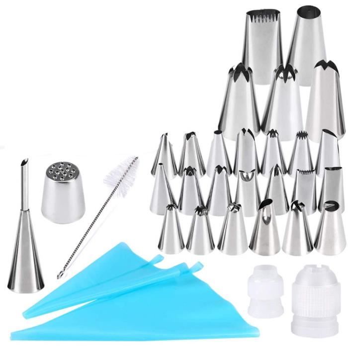 Ensemble varié : ce lot contient 35 douilles avec différents designs, y compris étoile fermée, étoile ouverte, française, ronde, lisse, feuille, pétale et plus pour répondre à tous vos besoins de décoration. De Buyer - Coffret de 35 douilles en inox et ses adaptateurs - 30 x 24 cm - Inox de Qualité Professionnelle, Sans Soudure pour Hygiène Parfaite, S'Adaptent aux Poches Pâtissières Nom du produit : kit de douilles en acier inoxydable DIY Marque : NUZAMAS Matériau : acier inoxydable 430., Dimensions : 14,6 x 6,8 x 0,3 cm. Matériau de qualité supérieure : fabriqué en acier inoxydable 430 de haute qualité, ces douilles sont extrêmement durables, résistantes à la rouille et à la corrosion. Convient à tous les niveaux : que vous soyez un boulanger professionnel, un débutant ou un enfant qui aime faire des gâteaux, ces douilles sont parfaites pour affiner vos créations et améliorer votre motricité fine. Créations artistiques : laissez libre cours à votre créativité avec ces douilles et créez de magnifiques motifs floraux pour votre prochain gâteau d'anniversaire ou de mariage. Résumé : Libérez votre potentiel de pâtisserie et de décoration avec le kit de douilles NUZAMAS DIY en acier inoxydable. Easy Meringue Recipe Gâteau et cuisine Rachida Améliorez votre jeu de pâtisserie et ajoutez une touche d'élégance à vos desserts avec le kit de douilles en acier inoxydable de NUZAMAS. Poids net : environ 2 g par pièce, 70 g par lot. Ce kit est parfait pour améliorer l'attrait visuel de vos créations et est un outil indispensable pour tout amateur de pâtisserie. Amateurs de pâtisserie, ce lot De Buyer est un game changer ! Il comprend une poche souple de 35 cm et 2 douilles en inox (lisse et cannelée Douille Patisserie Unie 6 Pièces Douilles Acier Inoxydable, Douilles à Pâtisserie Embouts De Douilles Roses Feuilles étoiles Que vous soyez un professionnel ou un débutant, ces douilles vous permettront de transformer vos desserts en œuvres d'art.
