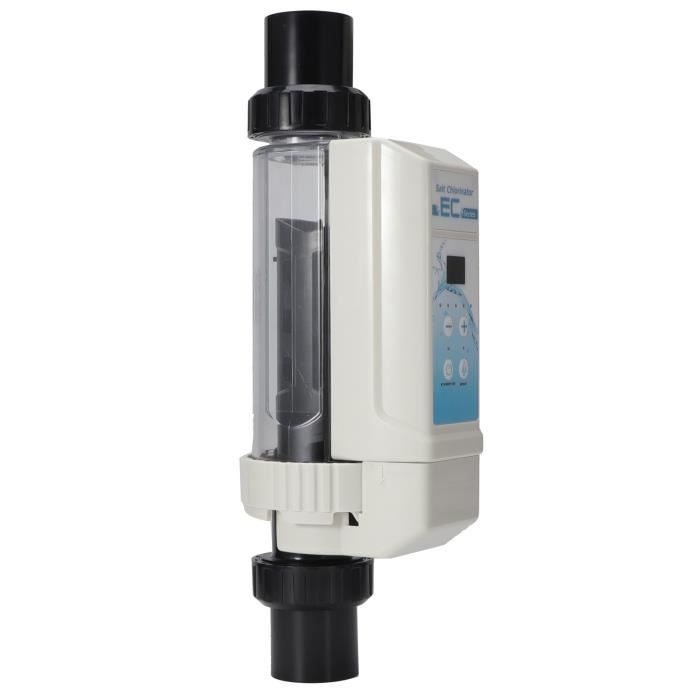 Ce chlorateur au sel garantit un niveau de chlore optimal en permanence, pour une piscine propre et sûre. Générateur de chlore au sel EC ● Surveillance de la température de l'eau : 10 °C (50 °F) à 45 °C (113 °F). Pour le nettoyage au sel et au chlore, afin de répondre aux besoins en sel et en chlore des piscines et spas. 【Large application】Appareil électronique de chlore au sel pour piscines, bassins d'hydrothérapie, spas et sources chaudes. 【Protection multifonctionnelle】Avec indicateurs de niveau de sel élevé et bas et fonction d'alarme de panne ; Avec une protection contre la température de l'eau (10-40 degrés), une protection contre les pénuries d'eau, etc. prolongez efficacement la durée de vie du générateur de chlore au sel. Cet électrolyseur au sel utilise une technologie électronique de contrôle avancée. Il génère du chlore pour la désinfection de la piscine grâce au sel. Il est à la fois multifonctionnel et facile à utiliser. Il contient des fonctions telles que l’auto-nettoyage et l’alarme de dysfonctionnement ● Surveillance de la salinité : alerte en cas de salinité trop faible. VGEBY Générateur de chlore pour piscine au sel avec alarme et panneau Production Chlore 8 12 16 20g/h Chlorinateurs Au Sel Pour Piscine Pour Piscine Spa Débordement La sonde ne fonctionne que lorsqu'elle détecte de l'eau. ● Appuyez sur le bouton de restauration pour rétablir les paramètres par défaut. Contenu de l'emballage1 électrolyseur au sel pour piscine1 transformateur abaisseur2 interfaces noires1 manuelService après-vente : Pour toute question ou suggestion concernant nos produits, n'hésitez pas à nous contacter par e-mail. Nous vous répondrons sous 24 heures et vous offrirons un service après-vente convivial. 【Détection du niveau d'eau】Le générateur de chlore 8 g/h, 12 g/h, 16 g/h, 20 g/h avec détection du niveau d'eau et niveau de sel en plastique est adapté au traitement de l'eau des piscines et des spas.