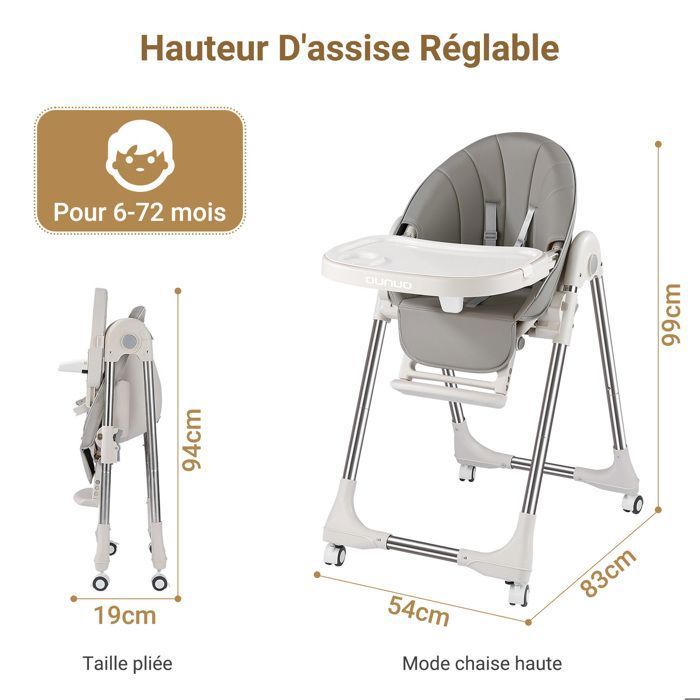 La ceinture de sécurité à cinq points et le design antidérapant assurent en outre la sécurité du bébé pendant les repas. La chaise haute pour bébé est idéale pour les enfants âgés de 3 à 36 mois. [Hauteurs réglables à 5 positions]Avec un bouton de réglage, la chaise haute pour bébé peut être modifiée en 5 hauteurs différentes Son coussin confortable et à la peau douce est facile à nettoyer et à détacher, rendant le nettoyage aisé. Pliage rapide : Grâce à son système de pliage à un clic, ce chaise haute bebe pliable se range facilement, économise de l’espace et est adapté aux appartements petits. Plateau innovant : Ce chaise haute bebe evolutive est réglable en 4 niveaux de rétraction et équipé d’un plateau double détachable : le plateau supérieur pour déposer les aliments, le plateau inférieur pour stocker des objets. C’est une chaise haute pratique, indispensable pour les familles avec bébé ! Régulation multifonctionnelle : Doté d’un dossier réglable en 4 niveaux conforme à l’ergonomie, ce chaises hautes bénéficie d’une largeur de siège de 34 cm, offrant une expérience plus confortable. Bebeboutik - Chaise Haute Bébé, Chaise Haute Enfant Pliable, Chaise... Ce chaise haute evolutive est disponible en quatre configurations : chaise haute, chaise basse, dossier inclinable et pliante. Test et avis sur la babymoov Slick Grey : chaise haute évolutive Chaise Haute évolutive 4 En 1 Chaise Haute Pliable 3 En 1 Pour Bébé, Chaise Haute Multifonctionnelle Ultra Compacte Et Légère Chaise Haute Pliable Plateau Double Ce chaise haute bébé confort peut évoluer et grandir avec votre bébé. Le dossier est réglable en quatre positions ; conçu pour s’adapter à la courbe de la colonne vertébrale du bébé et conforme à l’ergonomie, il offre un soutien optimal. Doté d’une conception ergonomique, ce chaise haute a un réglage télescopique en quatre positions, adapté aux différentes phases de croissance du bébé. Le bouton sous le plateau permet de le soulever, économisant de l’espace sans avoir à le détacher. Fabriqué avec des tubes d’acier épais et doté d’une structure triangulaire, ce transat haut bébé a une capacité de charge allant jusqu’à 50 kg, associant excellente stabilité et imperméabilité pour garantir la sécurité et la stabilité du bébé.