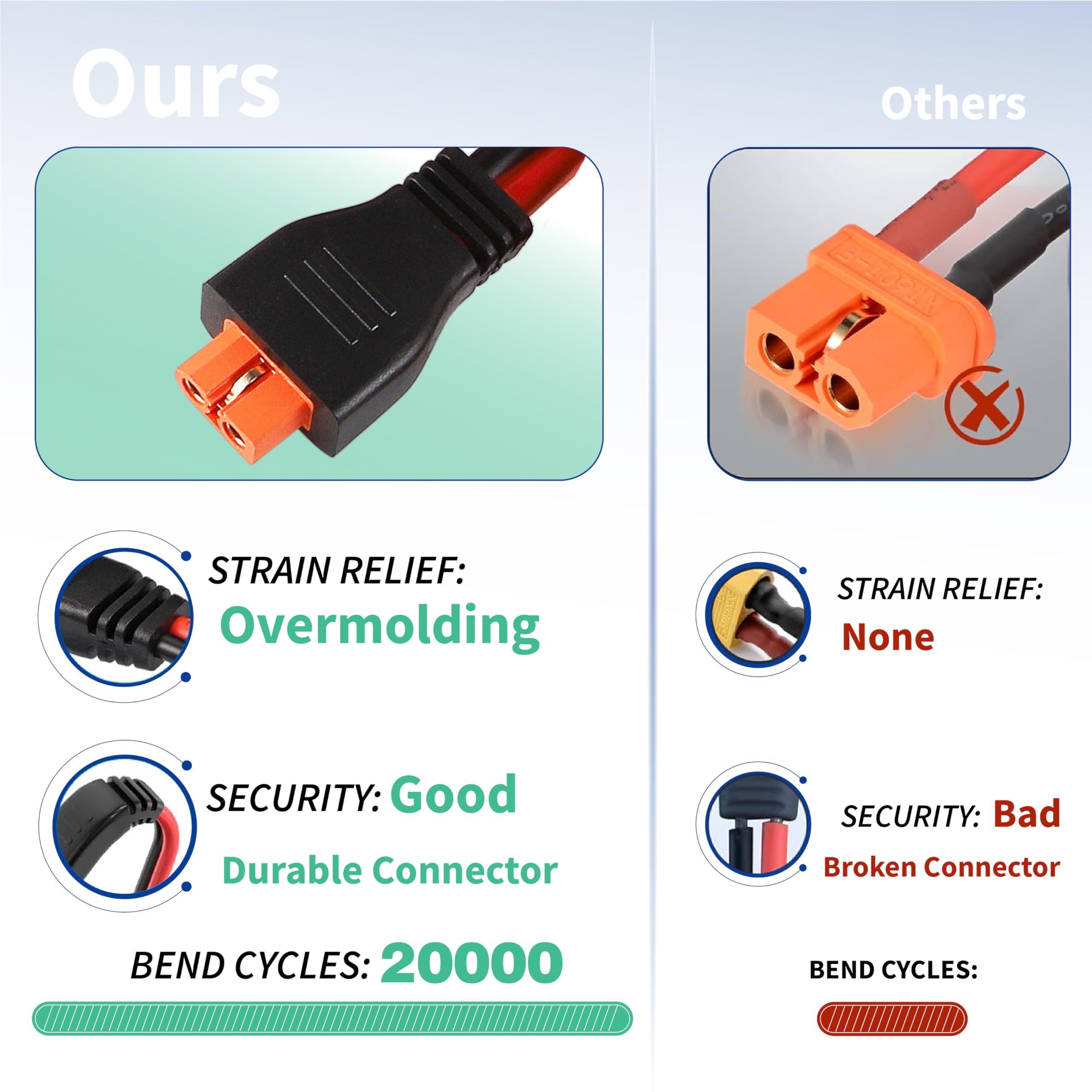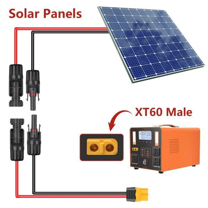Ce câble résistant aux intempéries est spécialement conçu pour les temps extrêmement chauds et froids. Câble solaire à XT60/XT60i EcoFlow XT60i (2.5m Description du produit 10 AWG/5., 26mm² Parfaitement compatible avec : comme il y a peu de chance que les stations Powerstations EcoFlow DELTA confondent le câble solaire avec un câble de charge de voiture et limitent le courant à 8 ampères, ce câble est équipé d'un connecteur XT60i de haute qualité pour l'identification. Câble d'extension XT60i XT60i-F : Des matériaux de haute qualité garantissent une transmission stable dans des conditions stables. ★Longueur du câble 1., 8M★Cette longueur vous permet de connecter la batterie solaire pour effectuer la charge à distance. Les câbles d'alimentation ( 10AWG 5., 26mm² ) sont très épais et durables. Si vous constatez que le panneau solaire ne charge pas le station électrique, vous devez simplement échanger les polarités positives et négatives du panneau solaire et puis commencer à charger. ZkeeShop Câble de charge solaire Connecteur solaire vers Parfaitement compatible avec les séries EF RIVER et DELTA Portable Power Station et générateur solaire. Ce câble dispose de la même configuration de connecteur et d'une plus grande épaisseur de câble (10 AWG/5., 26mm²) que le câble original XT60i, il est compatible avec toutes les stations d'alimentation, même si la détection n'est pas utilisée sur d'autres stations d'alimentation. Largement compatible avec les panneaux solaires portablesPanneaux solaires pliables. Description de Adaptateur pour câble de charge solaire XT60I-F, connecteur de câble 12AWG B (1) Large gamme d'applications : Câble d'extension avec adaptateur XT60I-F et connecteur solaire, fil 12 AWG, compatible avec la plupart des batteries (connexion et déconnexion), idéal pour les stations d'alimentation mobiles, voitures, camping-cars, camions, bateaux, etc. Très souple, il facilite... Cable Panneau Solaire Ecoflow Câble De Charge Solaire Connecteur Solaire Vers XT60i Adaptateur Connecteur De Panneau Solaire Câble 10AWG XT60i Compatible Pour EcoFlow DELTA Générateur Solaire Centrales Portables 180cm Cable Ecoflow Parfaitement compatible avec:Comme il y a une faible chance que les stations de puissance EcoFlow DELTA confondent le câble solaire avec un câble de chargement de voiture et limitent le courant à 8 ampères, ce câble est équipé d'un connecteur XT60i de haute qualité pour l'identification.