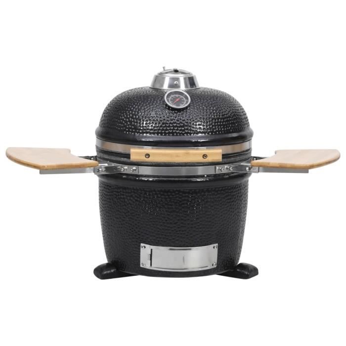 Le thermomètre intégré, stratégiquement placé, permet de vérifier facilement la température sans ouvrir le couvercle, ce qui aide à maintenir une chaleur constante pour des résultats de cuisson parfaits. Offrant des températures de 10°C à plus de 400°C, il s'adapte à différents combustibles comme les copeaux de bois, les morceaux de bois, les granulés ou le charbon de bois. Fiche Technique du Barbecue Kamado de 40,6cm Thermomètre Intégré Le thermomètre intégré vous permet de surveiller facilement la température de cuisson sans ouvrir le couvercle. Que vous organisiez un dîner intime ou que vous profitiez d'une soirée paisible sur la terrasse, notre Barbecue Kamado de 40,6 cm est l'allié parfait pour sublimer vos repas en plein air. Compact mais spacieux : malgré sa taille compacte, le barbecue de 40,6 cm offre un grand espace de cuisson, ce qui le rend parfait pour les petits espaces... Barbecue charbon céramique noir KAMADO 56 cm Flux d'Air Réglable Avec des évents réglables en haut et en bas, ce barbecue vous permet d'ajuster le flux d'air selon vos besoins. CUISSON POLYVALENTE : Ce barbecue polyvalent permet l'utilisation de différents combustibles tels que le charbon de bois, les copeaux de bois, et les granulés, offrant ainsi une variété de techniques de cuisson : grillades, fumage, rôtisserie, cuisson au four, adapté à toutes vos envies culinaires. COMPACT ET SPACIEUX : Malgré sa taille réduite de 40,6 cm, ce grill offre une surface de cuisson généreuse, idéale pour les petits espaces extérieurs ou les escapades en camping. Le joint en feutre améliore l'efficacité thermique, vous garantissant des repas toujours bien cuits. Barbecue Kamado Xxl Barbecue Charbon De Bois Mini Kamado, BBQ Céramique Noir 40 6cm Avec Poignee En Bois Thermometre Integre Ventilation 92418860 Barbecue Polyvalent Jardin Camping Design iconique en forme d'œuf en céramique * Grille en acier inoxydable de 40,6 cm * Thermomètre intégré * Système de circulation d'air supérieur & inférieur Les poignées en bambou, qui isolent bien la chaleur, vous permettent de le manipuler en toute sécurité, même à haute température. Avec sa coque en céramique à la forme iconique d'œuf, ce barbecue est parfait pour griller, saisir, cuire lentement, rôtir, cuire au four et fumer à froid. Grille Spacieuse de 33 cm Équipé d'une grille en acier inoxydable de 33 cm, ce Kamado assure une répartition homogène de la chaleur pour une cuisson parfaite. Transformez vos moments de cuisine en plein air avec notre Barbecue Kamado de 40,6 cm, conçu pour offrir une saveur exceptionnelle avec polyvalence. Compact et pratique, il est idéal pour les petits espaces extérieurs ou les sorties en camping, sans sacrifier la surface de cuisson. Il allie parfaitement praticité et fonctionnalité pour répondre à tous vos besoins culinaires.