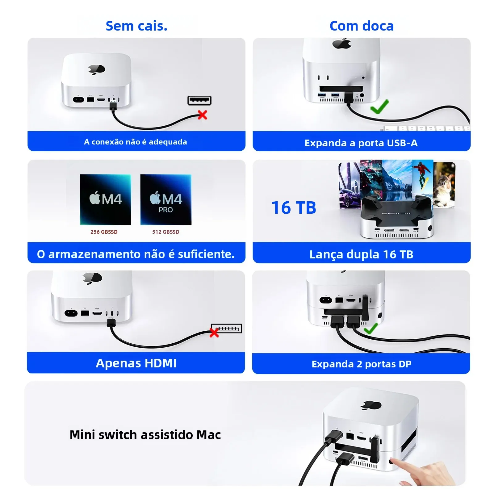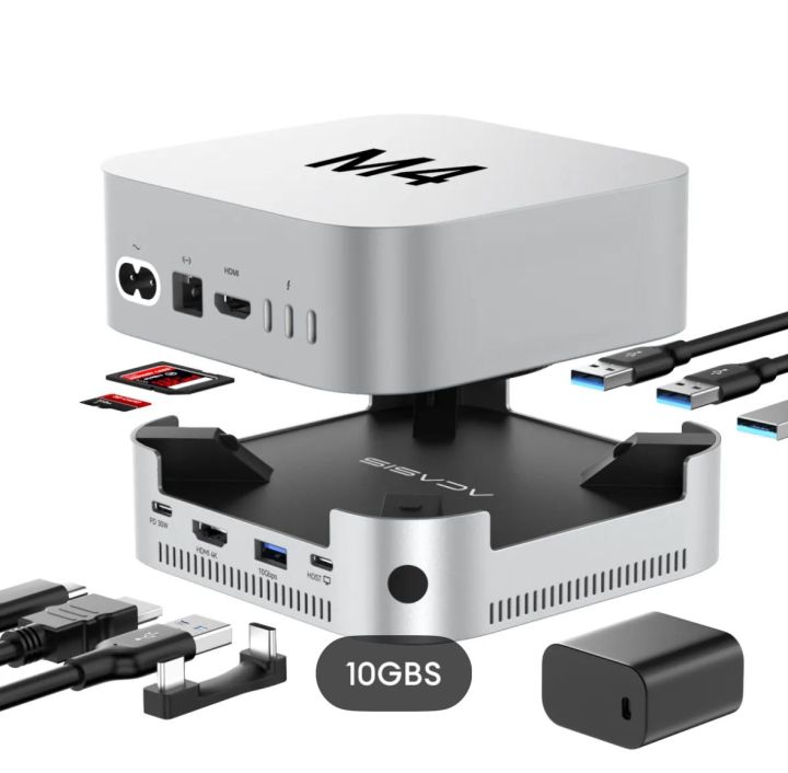 Le couvercle SSD est également en aluminium, et à l'intérieur du dock se trouvent deux ventilateurs de refroidissement silencieux intégrés qui s'activent automatiquement lors de la connexion du courant, atteignant environ 52 dB en fonctionnement. Mac Mini M4 Dock Mac Mini Stand ACASIS & Stand With Dual NVMe SSD Enclosure | 4K HDMI Hub With 30W PD Dual Bay Dock Hub Hdmi 4k Pour Mac Mini 2024 1 40Gbps en mode RAID 0 2 Jusqu'à 16 To 【Contenu de la livraison】 Inclut une vis, un tournevis, une pastille thermique, un câble MAC MINI M4 personnalisé, un adaptateur d'alimentation PD 30 W et quatre tampons de refroidissement en silicone. Il inclut un câble MAC MINI M4 personnalisé pour une transmission stable et une base en silicone antidérapante pour une stabilité supplémentaire, garantissant une utilisation fiable n'importe où. Ce design prend en charge une performance sans fil plus stable, permettant des lectures en continu plus fluides, des appels vidéo et des téléchargements volumineux avec moins d'interruptions. 【Multiécrans 4K simplifiés】 L'HDMI du Station d'accueil prend en charge 4K@60 Hz pour un miroitage ou une extension d'écran transparente – idéal pour la modification, les réunions et le divertissement. ACASIS Mac mini M4 Dock & Ständer mit Dual-Bay NVMe SSD-Gehäuse 1 Dissipation thermique 2 Un seul toucher 3 Notice pour SSD 4 Comment installer 5 Ce que vous recevez Les produits ACASIS bénéficient d'une garantie de 1 an couvrant la réparation ou le remplacement en cas de défauts de qualité non causés par une utilisation abusive. Refroidissement complet en aluminium avec double ventilation] Le dock Mac mini M4 présente une enceinte presque entièrement en alliage d'aluminium avec des trous de ventilation latéraux pour une dissipation thermique efficace 【Wi-Fi stable, interférences réduites】 Le Station d'accueil est équipé d'un blindage conducteur interne qui aide à réduire les interférences Wi-Fi 5 GHz – même lors de l'utilisation des ports USB-A haute vitesse de 10 Gbps. 2】 ⚠️⚠️⚠️Ne branchez pas ou débranchez pas votre SSD lorsque le courant est alimenté. Dans son ensemble, le RAID logiciel offre des options flexibles et rentables pour la performance, la protection des données et l'extension de stockage. 【Hub USB-C pour Mac Mini M4 et Mac Mini M4 Pro】 Conçu spécialement pour le Mac mini M4 et Mac Mini M4 Pro 2024, ce dock tout-en-un sert en même temps de support et propose deux slots SSD M. 2 (jusqu'à 8 To chacun).