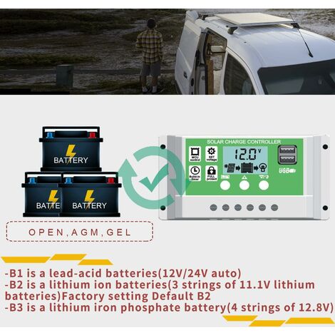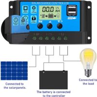 【Protection multicouche】protection intégrée contre les surintensités, les courts-circuits, la protection de connexion inversée et la protection de circuit ouvert sont toutes de récupération automatique sans endommager le contrôleur. CONTRÔLEUR SOLAIRE AMÉLIORÉ]Ce regulateur de charge solaire PWM vous aide à gérer automatiquement le fonctionnement des panneaux solaires et des batteries dans les systèmes solaires avec le microcontrôleur industriel intégré Spécifications: Tension : DC 12 V/24 V. Le contrôleur solaire s'éteint automatiquement une fois que la tension est trop faible, le contrôleur a une fonction de contrôle de la lumière et de contrôle du temps. Ce contrôleur est idéal pour les systèmes de génération d'énergie solaire, les maisons intelligentes, les chargeurs solaires, les systèmes de ventilation solaire, les boîtes lumineuses solaires, les panneaux d'affichage solaires, les lumières d'avertissement solaires, etc. 【Guide de connexion de l'appareil】le contrôleur de charge doit d'abord connecter la batterie, puis le panneau solaire, et enfin la charge. Merci pour votre compréhension! Contrôleur De Charge Solaire 30 A, Régulateur Intelligent De Le contrôleur est utilisé pour réaliser une charge intelligente efficace et rapide, et la durée de vie de la batterie est efficacement prolongée. Description de l'alimentation du système photovoltaïque: 30A batterie 12V système photovoltaïque : la puissance est respectivement 300W 30A batterie 24V système photovoltaïque : la puissance est respectivement 600W Utiliser les paramètres des paramètres : La batterie plomb-acide 12., 0V correspond à: La tension du flotteur est réglée à: 13,6 La tension de décharge de récupération est réglée à: 12,6 La tension de coupure de décharge est réglée à: 10,7 12., 8V lithium fer phosphate batterie correspond à: La tension du flotteur est réglée à: 14,6 La tension de décharge de récupération est réglée à: 13,6 La tension de coupure de décharge est réglée à: 11,0 La batterie au lithium 11., 1V correspond à: La tension du flotteur est réglée à: 12,6 La tension de décharge de récupération est réglée à: 11,6 La tension de coupure de décharge est réglée à: 9,6 Notes : En raison des différents écrans et des effets de lumière, la couleur réelle de l'article peut être légèrement différente de la couleur affichée sur les photos. 【Régulation PWM en trois étapes】le mode de charge PWM en trois étapes est adopté, y compris la charge directe, la charge de levage et la charge flottante. Spécifications · Tension de la batterie: 12V / 24V · Courant de charge: 30A · Courant de décharge: 10A · Entrée solaire maximale: <50V · Float Charge: 13,7V (par... Régulateur Batterie LCD USB Contrôleur De Charge Solaire 30 A 12 V/24 V Automatique, Contrôleur De Panneau Solaire PWM 30 A Avec Double USB LCD Adapté Aux Petits Systèmes Solaires Régulateur Batterie 12V 24V Automatique Liste d'emballage: 1 X c
