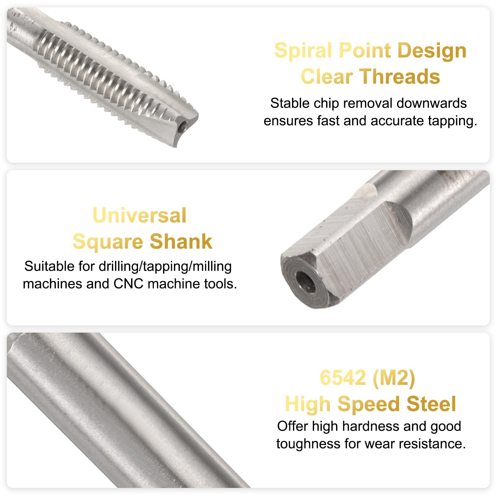 L'angle de taraudage doit être de 90 degrés vertical et stable, et la profondeur de taraudage ne doit pas dépasser 1,5 fois le diamètre du taraud. Taille du Taraud À Point Spirale: Taille du filetage: M8 x 1.25, Largeur du côté de la tige: 5mm / 0.2 pouce, Longueur du filetage Le foret de taraudage présente un point spirale, un chanfrein de bouchon et un filetage à droite. Applications: Le taraud peut être utilisé pour le perçage et le taraudage de l'acier inoxydable, de l'aluminium, de la fonte, de l'acier allié, de l'acier ordinaire, des métaux non ferreux, des plastiques durs, etc. Caractéristiques: Le foret de taraudage présente un point spirale, un chanfrein de bouchon et un filetage à droite. Taille du Taraud À Point Spirale: Taille du filetage: M8 x 1., 25, Largeur du côté de la tige: 5mm / 0., 2 pouce, Longueur du filetage: 25mm / 1 pouce, Longueur totale: 100mm / 4 pouces, Précision: H2 Acier Rapide 6542 (M2): Fabriqué en acier rapide, le foret de taraudage a une haute dureté, ténacité et résistance à l'usure, et peut éliminer les copeaux de manière stable pendant la coupe. Découvrez des jeux d'outils de coupe de filetages pour un taraudage de précision. Idéals pour un usage industriel avec des outils de haute qualité et... Les rainures sur le taraud facilitent l'élimination des copeaux et des débris du trou. Zerone Foret à fileter 10 pièces taraud à filetage droit HSS haute Outil Taraudage Spirale QUARKZMAN Tarauds à Filetage En Spirale Métrique, M8 X 1.25 H2, Outils Taraud M8x1.25 Spécification:Taille du filetage: M8 x 1., 25Largeur du côté de la tige: 5mm / 0., 2 pouceLongueur du filetage: 25mm / 1 pouceLongueur totale: 100mm / 4 poucesPrécision: H2Matériau: HSS 6542 (Acier Rapide 6542)Finition: Non revêtuContenu de l'emballage:1pcs x Taraud À Point Spirale Adapté aux perceuses, machines à tarauder, machines CNC et fraiseuses. Plus la dureté est élevée, plus la vitesse est lente. Utilisez de l'huile de taraudage pour améliorer la précision de façonnage et réduire la probabilité de casse. Il est recommandé d'utiliser un taraud machine avec un mandrin de taraudage doté d'une fonction de protection contre les surcharges.