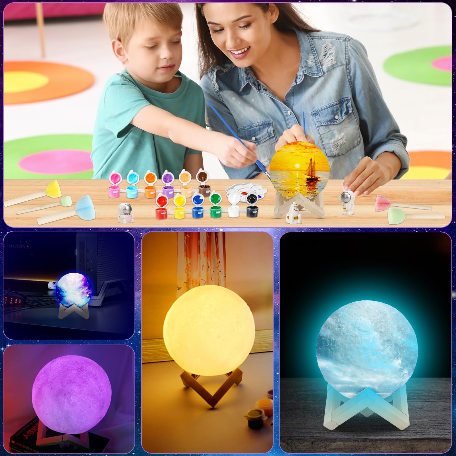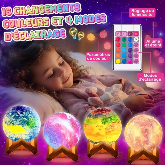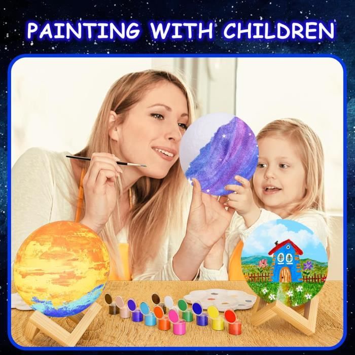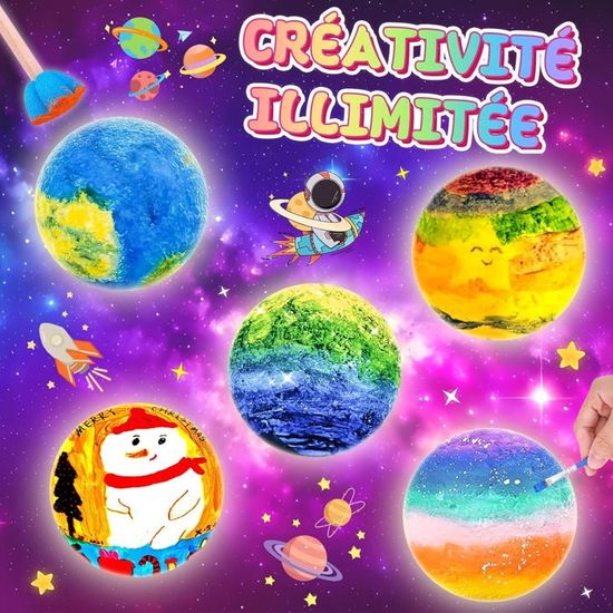 Attention: 1 : Lors de la première utilisation, la veilleuse 3D Lune n'est pas entièrement active et doit être entièrement rechargée via le port USB. Kit Peinture Enfant avec Lampe de Lune peut améliorer l'attention, la créativité et l'imagination des enfants. En peignant, ils apprennent à observer les couleurs et à libérer leur talent artistique. [Kit Peinture Enfant avec Lampe de Lune]: dispose de 16 changements de couleur et de 4 modes d'éclairage (clignotant, stroboscopique, fondu, doux). Cet ensemble de lampes lunaires créatives pour enfants est un merveilleux cadeau pour les filles âgées de 5 à 12 ans. Fabriqué en plastique opaque avec une texture de lune réaliste, le clair de lune est incassable et la peinture acrylique est à base d'eau, donc facile à... Lampe Lune Avec Haut-Parleur Bluetooth, 15Cm 16 Couleurs 3D Lampe Led Il est parfait pour ajouter de la couleur à n'importe quelle pièce. Cet ensemble de loisirs créatifs offre non seulement du plaisir à peindre, mais génère également une douce lumière qui crée une atmosphère apaisante pour aider les enfants à s'endormir. Avec ces kits de bricolage pour enfants, parents peuvent également interagir avec leurs enfants, échanger et jouer entre eux, augmenter le temps passé avec les enfants et profiter des loisirs et du temps romantique parent-enfant. Il est également joliment emballé et constitue un excellent cadeau pour les L'enfant âgées de 3 -12 ans. Loisirs Créatifs Enfant Espace Kit Peinture Enfant Avec Lampe De Lune, Veilleuse De Peindre 3D Veilleuse Enfant à Peindre Soi-même Kit Peinture Enfant avec Lampe de Lune]: dispose de 16 changements de couleur et de 4 modes d'éclairage (clignotant, stroboscopique, fondu, doux). La télécommande permet de régler la luminosité et de changer différentes couleurs Cette lampe jouet spatial est un excellent choix de cadeau pour Noël, Halloween, un anniversaire, la Saint-Valentin, une fête d'enfants, des prix en classe ou d'autres vacances. Cette lampe en kit de peinture est parfaite pour les enfants qui aiment bricoler. [Cadeau Artistique pour les Enfants]: Cette Kit de Peinture Lampe de Lune est un excellent choix de cadeau pour Noël, Halloween, les anniversaires, la Saint-Valentin, les fêtes pour enfants, les récompenses en classe ou d'autres occasions spéciales. Kit de Peinture Lampe Lune Veilleuse: Libérez la créativité de votre enfant avec notre captivant kit de lampe lune à peindre soi-même Parfait pour les petits astronautes âgés de 5 à 12 ans, cette veilleuse 3D Space Moon transforme n'importe quelle chambre en un sanctuaire stellaire. 2 : La télécommande fonctionne grâce à sa pile, vous devez tirer sur l'isolateur situé en bas pour l'utiliser, après aucune réaction, veuillez remplacer la pile par une nouvelle. Idee cadeau est un excellent élément de décoration pour la chambre d'enfant.
