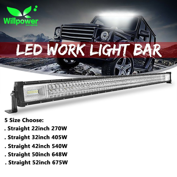 Rampe De Levage Voiture Willpower Barre U00e0 LED, 32 Pouces 405W Willpower Barre LED 132cm 52'' 675W Con Câblage Rampe LED Spot Et Flood Bar A Led 12v 24v étanche Projecteur Led Longue Portée Feux Phare De Travail Led Pour 4x4 Voiture Camion Tracteur Quad Bateau P 187442 Elle a d'excellentes performances d'étanchéité, anti-poussière et antichoc. Spécification : ★ Matériau de la coque : alliage d'aluminium moulé sous pression ★ Matériau de la lentille : lentille en polycarbonate ★ Tension de fonctionnement : 12-30 V CC (applicable aux véhicules 12 V, 24 V) ★ Niveau de protection : IP67 ; imperméable, anti-poussière, antichoc et résistant à la corrosion. Champ d'application Cette lampe de travail convient à divers véhicules tout-terrain, camions 4x4 ATV SUV, exploitation minière, navigation de plaisance, agriculture et équipement lourd, etc. Pour éclairer comme en plein jour, la Barre LED Willpower de 132cm (52 pouces) et 675W est un vrai monstre de lumière ! Avec un faisceau combiné spot et flood, elle offre une portée longue et une large zone d'éclairage, parfaite pour les routes sombres ou les chantiers Matériaux: Cette lampe de travail est fabriquée à partir d'un boîtier en aluminium moulé sous pression et d'une lentille en polycarbonate avec une conception à trois rangées de gobelets réfléchissants nichés offrant une efficacité lumineuse extrêmement élevée. Convient à l'éclairage auxiliaire de véhicules tels que les 4x4, camions, SUV, quads (ATV), UTV, etc. aplus content image... Niveau d'étanchéité : niveau IP67, la coque de protection sans couture utilise de la colle imperméable pour sceller les espaces. ★ Température de couleur de la lumière : 6000K ★ Support de montage : acier inoxydable ★ Température de fonctionnement : -40 ℃ ~ 85 ℃ ★ Durée de vie : plus de 30 000 heures.