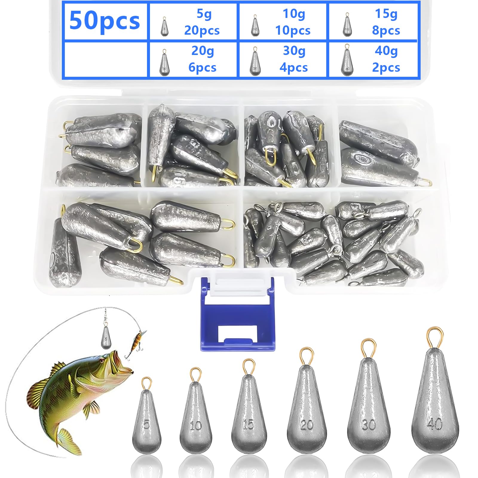 Les plombs Dropshot de différents poids et tailles répondent à vos différentes exigences. --Au total, 28 pièces de 6 tailles différentes, dont 10 pièces de 10 g, 6 pièces de 15 g, 5 pièces de 20 g et 30 g, et 1 pièce de 40 g et 50 g. Parfait pour les débutants et les professionnels afin d'augmenter le taux de capture et d'éviter les pertes inutiles. Avantages fonctionnels : ces plombs conduisent votre appât rapidement et précisément vers le fond, où ils le stabilisent et attirent plus facilement les poissons tels que le brochet ou le bar. Les plombs ronds sont les mieux adaptés aux fonds vaseux et sableux pour la pêche au brochet, au bar, à la marigane, etc. Plomb pêche au coup BOITE 8 CASES PLOMB FENDU PEINT CAPERLAN | Decathlon Plomb pêche 30g, 40g et 50g - Sport & Plein air La ligne de pêche est tendue verticalement dans l'eau, ce qui permet une grande sensibilité aux touches et vous donne un temps de réaction immédiat. Que vous soyez seul ou entre amis, ces poids transformeront chaque sortie de pêche en une aventure réussie. Applications variées : idéal pour les lieux de pêche tels que la pêche en mer depuis un bateau, les côtes maritimes, les lacs, les rivières, les réservoirs, les étangs et les ruisseaux. La surface lisse réduit le risque de s'accrocher aux pierres ou aux racines et garantit une expérience de pêche fluide, idéale pour des lancers précis et une présentation efficace des appâts. Plombs Pêche Mer 28 Pièces Plomb Peche 100g Lot De 10 Plombs De Pêche En Fer - Poids 80g à 200g Plomb Peche Carpe 80g Plomb De Pêche Retour Rapide XSHAO 50 PCS Plomb Peche Mer, Poids de Pêche 5 g/ 10 g/ 15 g/ 20 g/ 30 g/ 40 g avec Boîte de Rangement pour Pêche en Plein Air et Mer Spécifications : Matériau : plomb électrolytique Couleur : argent Quantité : 28 pièces Poids : 10 g/15 g/20 g/30 g/40 g/50 g Taille : comme sur la photo Contenu du paquet : 10 g x 10 pièces de plomb en forme de poire pour la pêche 15 g x 6 pièces de plomb en forme de poire pour la pêche 20 g x 5 pièces de plomb en forme de poire pour la pêche 30 g x 5 pièces de plomb en forme de poire pour la pêche 40 g x 1 pièce de plomb en forme de poire pour la pêche 50 g x 1 pièce de plomb en forme de poire pour la pêche Remarque : * Taille mesurée manuellement, une erreur de 0 à 0,3 cm peut survenir, ce qui est normal. Le matériau de haute qualité rend le poids résistant à la corrosion, à l'usure, à la rouille et à l'oxydation, ce qui permet de l'utiliser en toute confiance. Conception en forme de goutte : nos plombs de pêche ont une forme unique en goutte d'eau, ce qui minimise la résistance dans l'eau lors de la descente et permet une vitesse d'entrée dans l'eau rapide. La surface lisse réduit également le risque de se coincer dans les pierres. --Les plombs de pêche sont parfaits pour la pêche en mer depuis un bateau, la pêche sur les rochers, la pêche sur la plage, la pêche en lac, en rivière, en réservoir, en étang et en ruisseau. La conception en forme de goutte brille particulièrement sur les fonds boueux ou sableux lors de la pêche aux poissons prédateurs, ce qui est parfait pour le brochet, le bar, la marigane et bien d'autres encore.
