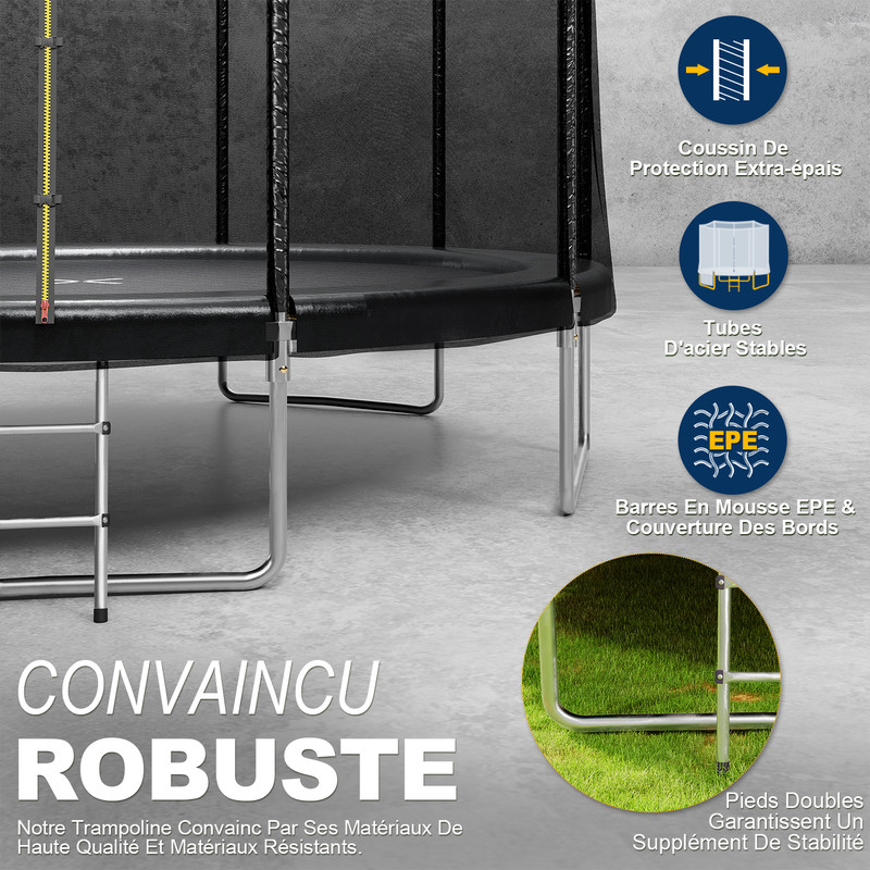 Chaque trampoline est fabriqué dans notre usine professionnelle. EN STOCK : Trampoline pour Enfants 140cm, Trampoline Extérieur et Intérieur avec Filet de Sécurité Surélevé, Cadre en Acier, Trampoline Rouge, Tramp 140Haut Rouge BK 01 pas cher. Livraison rapide partout en France Le tapis de protection à ressorts extra épais revêtu de vinyle est résistant aux couleurs et aux intempéries, de sorte que le trampoline peut rester debout à l'extérieur. [Sturdy frame and accessories] this trampoline is equipped with special large U-shaped legs and reinforced 1., 2mm tubes to improve stability and safety. Nous vous donnerons une réponse rapide dans les 12 heures. COSTWAY Trampoline Extérieur Enfants 165 CM Avec Filet De Sécurité, Trampoline Enfants Avec Filet De Securite Trampoline Enfants Avec Cadre En Acier 6 Poteaux Recouvert De Mousse Charge Max 135kg Pour Garcon Et Fille Vert 83912316 Les tapis de sécurité empêchent les blessures dues au contact des ressorts et aux zones sensibles aux chocs. The trampoline with a basket brings even more fun to the children when jumping and allows you and your children to have fun in complete peace of mind [Réponse rapide] Si vous achetez le trampoline Redkid avec clôture et si vous avez des questions ou des problèmes avec notre produit, n'hésitez pas à nous contacter. [Capacité de charge] Le trampoline avec clôture peut accueillir simultanément 2 à 8 enfants (en fonction de la taille du trampoline). Trampoline 305 Cm Redkid Trampoline Jardin 305/366 Cm - Filet De C'est un endroit idéal pour amener les enfants à une réunion et il attirera certainement de nombreux enfants à venir et à jouer. Mini trampoline enfant 1545 mm,VEVOR rebondisseur pour enfants avec...