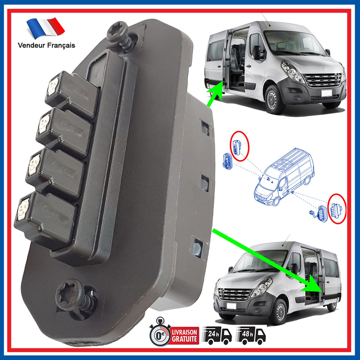 Ford Transit Interrupteur de contact porte coulissante, 10.00 Capteur Verrouillage Centralisé NV400 Contacteur De Porte Latérale Coulissante Pour Master Movano B NV400 252160004R Interrupteur Verrouillage Centralisé Cette conception robuste garantit un fonctionnement fiable dans différentes conditions, offre une fiabilité à long terme et réduit le besoin de remplacements fréquents. Spécifications: Nom du produit : interrupteur de contact de porte coulissante Matériau : métal, plastique., Couleur : noir., Tension : 12 V. Compatibilité : Compatible avec NV400 Opel Movano B compatible avec Renault Master 3., Contenu de l'emballage : 1 interrupteur de contact électrique pour porte coulissante., 1 plaque de contact. Cet interrupteur de contact de porte coulissante est utilisé pour installer des moteurs de verrouillage centralisé sur les portes coulissantes des minibus. Il est conçu pour être monté dans la zone du cadre de la porte coulissante et peut également être utilisé sur la porte arrière du fourgon de livraison Équipement du véhicule : cet interrupteur de contact latéral à porte coulissante est compatible avec NV400 Opel Movano B Renault Master 3., Remplacement direct : l'interrupteur de verrouillage de porte coulissante est spécialement conçu pour remplacer l'interrupteur de contact de porte coulissante ancien ou endommagé. Pour Renault Master 3 Movano 2010- Porte Coulissante Interrupteur 252160003R ; Numéro de l'objet. 285502690135 ; Emplacement sur le véhicule. Porte Coulissante Matériau de qualité supérieure : cet ensemble d'interrupteurs de serrure de porte coulissante est fabriqué en plastique ABS de haute qualité, offrant une excellente durabilité et stabilité. Lieu de montage : arrière, gauche, droite.