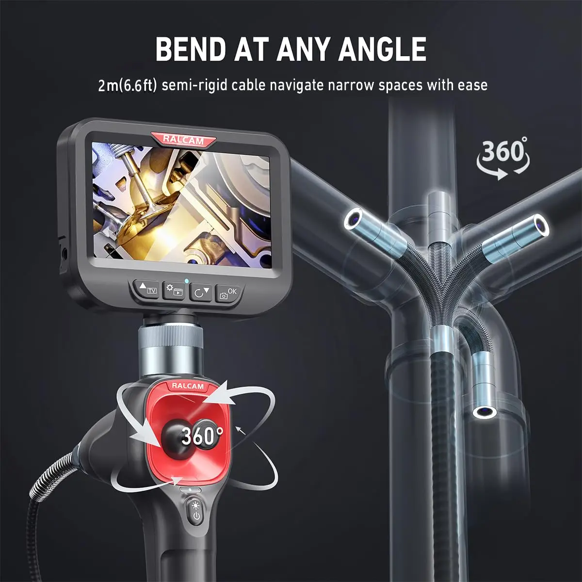 Étanchéité IP67 et protection haute température : cette caméra de drainage dispose d'une résistance à l'eau de niveau IP67 et est équipée de 6 LED pour garantir une visibilité claire même dans des environnements sombres ou humides. Le design ergonomique de poche dispose de commandes intuitives avec des boutons rouges pratiques pour une utilisation facile, tandis que le grand écran offre une excellente visibilité des zones d'inspection. Il n'est pas nécessaire de connecter un téléphone pour télécharger l'application. Il est parfait pour inspecter l'intérieur des tuyaux ou des zones qui ne peuvent pas être observées directement à l'œil nu, ce qui en fait un outil idéal pour diverses tâches d'inspection. Sa performance de flexion très flexible vous permet de vous déplacer facilement dans des espaces étroits ou complexes. Teslong Endoscope articulé bidirectionnel de 3,9 mm avec lumière Il utilise une technologie unique de protection à haute température qui lui permet de gérer des conditions environnementales difficiles. Lorsque la température dépasse 75 °C, l'endoscope s'éteint automatiquement pour une auto-protection. [Conception étanche] IP67 étanche, sonde de 5,5 mm de diamètre, livrée avec 6 lumières LED réglables et une fine sonde étanche, cette caméra endoscopique convient à différents types d'environnements, par exemple, une zone faiblement éclairée ou sombre, une zone humide ou mouillée, etc Endoscope Sonde Articulée 360 Caméra Rotative à 360 Degrés, Endoscope 4.3 Pouces, 6mm, 1080P, Endoscope Entièrement Haute Définition, Sonde Visuelle D'inspection Industrielle Endoscope Portable Full HD 1080p Son design est à la fois durable et multifonctionnel, capable de répondre aux différents besoins des professionnels et des amateurs de bricolage. Que vous soyez un mécanicien professionnel, un inspecteur de bâtiment ou un technicien d'entretien, cet endoscope polyvalent offre la précision et la clarté nécessaires pour des inspections visuelles détaillées. La caméra endoscopique est dotée de 8 2 lumières avec 3 niveaux de luminosité réglables pour fournir suffisamment de lumière pour les situations sombres Endoscope articulé à 360° : l'objectif de cet endoscope pliable peut facilement pivoter à 360° et se plier vers l'arrière de 210°. Sa plage de mise au point optimale est comprise entre 4 et 10 centimètres, permettant la capture d'images claires et très détaillées dans n'importe quel endroit souhaité. La sonde innovante articulée bidirectionnelle à 360° avec un diamètre mince de 6 mm permet une navigation précise dans les espaces restreints, ce qui la rend idéale pour les inspections mécaniques approfondies. Le dispositif de contrôle de flexion est à la fois sensible et précis, permettant aux utilisateurs de régler rapidement et précisément l'angle souhaité, améliorant ainsi l'efficacité du travail.