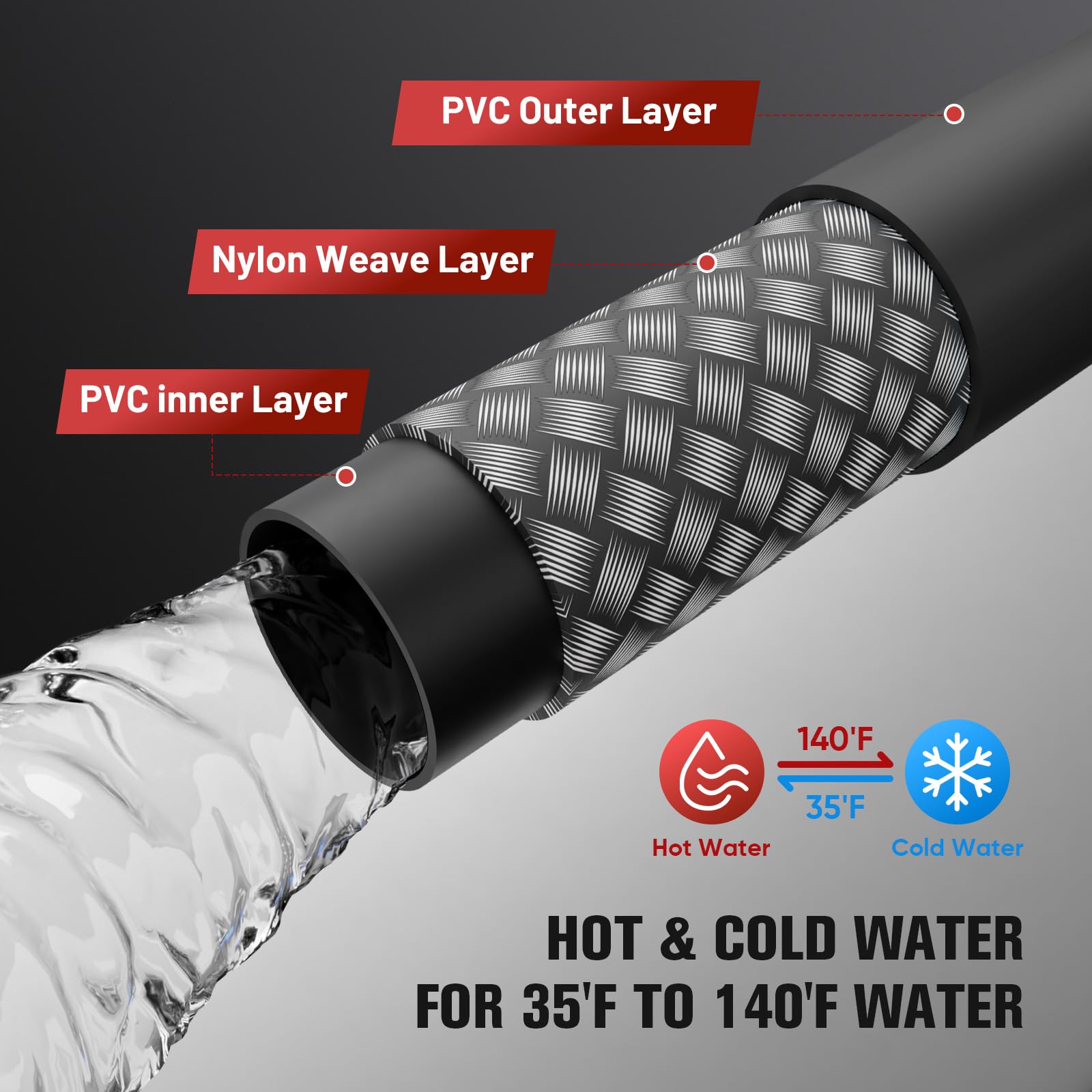 Assure un écoulement stable et continu, même sur des terrains complexes ou à différents angles, en évitant les blocages causés par la flexion du tuyau. Conçu avec une durabilité renforcée et une structure résistante à l’écrasement, notre tuyau reste solide et flexible sous pression – parfait pour un lavage de voiture régulier ou un nettoyage extérieur intensif. Les manchons de protection aux deux extrémités réduisent les plis et l’usure, prolongeant la durée de vie du tuyau et assurant une utilisation quotidienne fiable. 【Significantly lmproved Kink Resistance】 Conçu avec une structure flexible améliorée, ce tuyau élimine complètement les plis et torsions, assurant un débit d’eau régulier et ininterrompu. Matériaux haut de gamme – Performances optimales tuyau haute pression - Marques, Stock & Livraison rapide chez Leroy Merlin. Un grand choix de produits aux meilleurs prix AURORA CAR Tuyau de nettoyeur haute pression de 7,6 m avec connexion 【3600 PSI Working Pressure】 Conçu pour les tâches de nettoyage résidentiel et léger commercial, ce tuyau de 15 m offre des performances optimales à 2000–3600 PSI. En cas de problème, notre équipe d’assistance professionnelle est prête à fournir des solutions rapides et efficaces – afin que vous puissiez nettoyer en toute confiance. Compatible avec une large gamme de modèles, y compris K2 Compact, K4 Full Control, K5 Compact, K7 Compact, et plus encore. Adapté à diverses conditions météorologiques, le tuyau reste souple et fonctionnel aussi bien par temps chaud que froid. Karcher K5 Tuyau Haute Pression 15m, 5800 Psi, Pour Nettoyeur Karcher K2-K5 Karcher K3 COMPATIBILIT - Le tuyau de nettoyeur haute pression de 15M peut supporter une pression allant jusqu' 3600 PSI. Le tuyau de rechange pour nettoyeur haute pression femelle M22 14mm convient la plupart des nettoyeurs haute pression domestiques et commerciaux Fabriqué avec des matériaux de qualité supérieure, notre produit assure une efficacité maximale dans toutes les conditions. Facile à utiliser et très performant, notre produit nettoie rapidement et en profondeur tout type de saleté, des taches tenaces à la poussière quotidienne, pour un résultat impeccable et rafraîchissant. Équipé de connecteurs de type Karcher, notre tuyau s’adapte facilement à la plupart des nettoyeurs haute pression Karcher, assurant un lavage sécurisé et sans tracas à chaque utilisation. Description du produit Nettoyage professionnel – Sans effort et efficace Il offre des performances fluides et constantes, que ce soit pour les besoins quotidiens ou les tâches spécifiques, en toute tranquillité d’esprit. 【24-Month Warranty and Service】 Soutenu par une garantie de 24 mois et un service client à vie d’KiloSton.