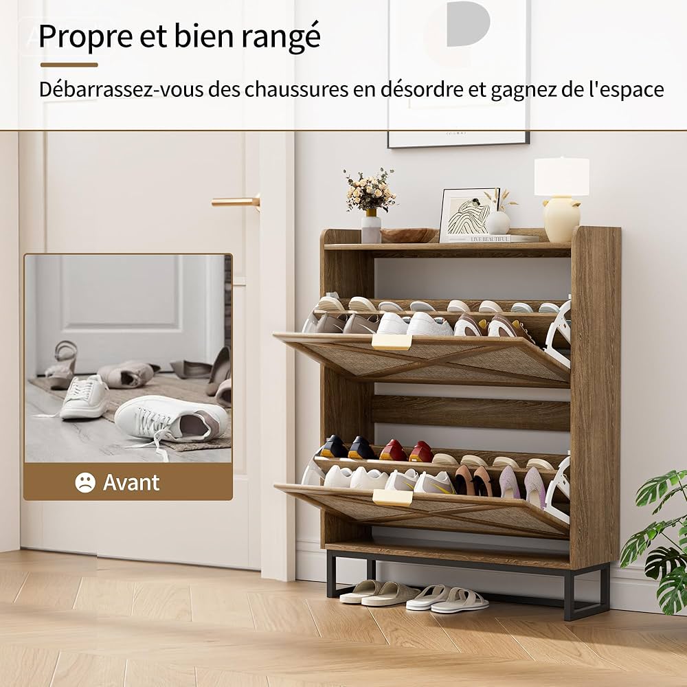 Il s'intègre naturellement, apportant fonctionnalité et raffinement à votre intérieur. DIVISEUR MODULABLE/REMOVABLE : Simple à ajuster ou à enlever, ce meuble à chaussures peut facilement passer du rangement de chaussures à celui de bottes ou de chaussures hautes 【Rangement polyvalent】Ce banc à chaussures avec compartiment rabattable permet de ranger différents types de chaussures. Sa capacité de charge est remarquable, supportant un poids maximal d'environ 200 kg — deux adultes peuvent s'asseoir dessus ensemble sans aucune contrainte. N’hésitez pas à nous contacter en cas de questions. Meuble Chaussure Entree BonVache Banc à Chaussures, Compartiment Rabattable Avec Meuble Chaussures 【Design réglable】Ce banc à chaussures d'entrée avec rangement intégré dispose d'un aménagement interne réglable pour organiser chaussures et articles d'entretien. Le coussin amovible facilite le nettoyage quotidien ; si vous souhaitez changer de style, il est également simple de le remplacer par un coussin de votre choix. 【Service de qualité】Guide d’assemblage simple et clair pour une installation sans effort. Deux compartiments latéraux droits gardent chaussons et chaussures fréquemment utilisés à portée de main, pour un vestibule toujours ordonné. Hovothy Banc à chaussures 62 x 32 x 50 cm Meuble de couloir Meuble de chambre à coucher Banc d'entrée Meuble de salon Banc de salon Banc de siège Coffre de couloir 【Robuste et Durable】e meuble chaussure d'entrée est composé de MDF (panneau de fibres médium-densité) de haute qualité et de pieds en métal solides. CLOISON AMOVIBLE REGLABLE EN HAUTEUR IDEA17 | Idea&Ko