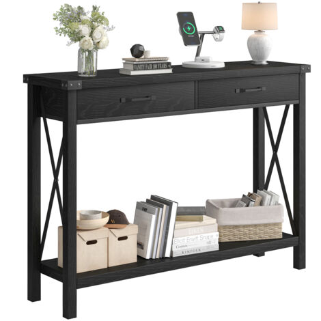 Assemblage nécessaire : Oui vidaXL. Table Console Table dEntrée avec 2 Tiroirs Table de Salon Table de Couloir Intérieur Salle de Séjour 90x30x75 cm Bois de Manguier Massif Stabiles Gestell: La table basse est munie d'une structure en acier robuste. 【Grand espace de rangement :】 cette table d'entrée pratique dispose de 2 tiroirs et de 2 étagères inférieures, offrant suffisamment d'espace pour ranger vos livres, plantes, boîtes de rangement, décorations, etc. L'acier est un matériau exceptionnellement dur et solide. 【Matériau durable :】 le bois d'ingénierie est d'une qualité exceptionnelle avec une surface lisse et présente également résistance, stabilité et résistance à l'humidité. 【Cadre robuste :】 le bout de canapé est construit avec un cadre en acier robuste. Ajoutez une touche d'élégance à votre entrée, salon ou couloir avec cette table console élégante. Matériau durable : le bois d'ingénierie est d'une qualité exceptionnelle avec une surface lisse et présente également résistance, stabilité et résistance à l'humidité L'acier est un matériau exceptionnellement dur et résistant. Table console avec étagères chêne sonoma 100x35x75 cm GHR74173 Table Console Avec Tiroirs étagères Vidaxl Table Console Avec Tiroirs Et étagères Chêne Sonoma Table Console Rangement environ 100 x 34,5 x 75 cm Il offre robustesse et stabilité. Présentation : Vous pouvez également afficher vos photos préférées, articles de décoration ou fleurs sur la table d'appoint pour rendre votre espace de vie plus beau. Matériau : Holzwerkstoff, StahlGesamtabmessungen: 100 x 34,5 x 75 cm (L x P x H) - Dimensions du tiroir : 43,5 x 30 x 7 cm (l x p x h). Charge maximale (par étagère) : 80 kg - Assemblage nécessaire : Oui