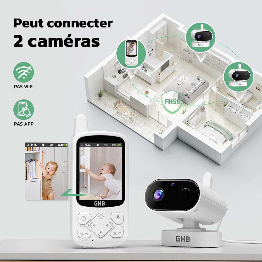 GHB Babyphone Caméra, alliant technologie et amour pour chaque famille. Avec une sensibilité exceptionnelle, il capte chaque pleur et mouvement, offrant une tranquillité d'esprit aux parents Que vous ayez besoin d'une surveillance ou d'un accompagnement chaleureux, cet appareil excelle, vous offrant tranquillité d'esprit et commodité. Babyphone Philips Avent GHB 7 Inch 350° Rotation Baby Camera 1080P Babyphone Camera GHB Babyphone Camera 7 tout-en-un est le choix idéal pour la sécurité de votre maison. Fonctionnalités intelligentes - Équipée d'une vision nocturne, d'une détection de température et d'une alerte de déconnexion, la babyphone caméra offre une sécurité complète Note - Le package ne contient qu'une seule caméra; Carte SD non incluse; La caméra ne contient pas de batterie rechargeable et doit être connecté à un chargeur Écran IPS HD de 7 pouces : Profitez d'une résolution 1080P et de couleurs réalistes grâce à l'écran IPS de 7 pouces, pour une surveillance précise et immersive des mouvements de votre bébé Surveillance à 360° sans angle mort : La caméra pivote à 350° horizontalement et 90° verticalement, offrant une couverture complète pour... GHB Babyphone Caéra Babyphone Vidéo Écran 5 inches 720P HD Caéra Bébé La caméra pivote à 350° horizontalement et à 110° verticalement, offrant une couverture à 360° et protégeant chaque recoin de votre maison. Surveillance à 360° - La caméra pivote à 350° horizontalement et 110° verticalement, assurant une couverture sans angle mort pour la sécurité et le confort de bébé Son écran IPS HD de 7 pouces avec une résolution de 1080p offre des images d'une netteté exceptionnelle et un niveau de détail inégalé.