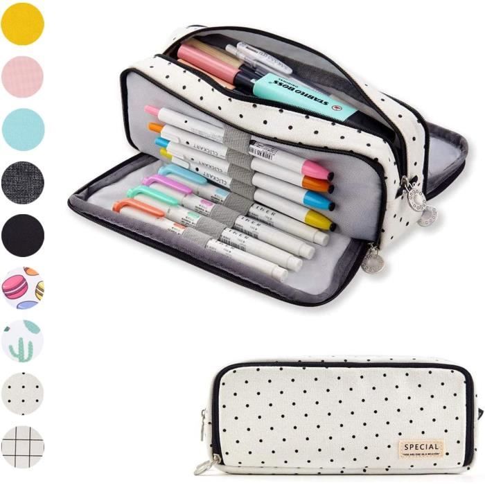 La trousse à crayons Vaschy présente une excellente capacité et une apparence soignée, elle vous offre le loisir si vous avez besoin d’un bon organisateur pour rassembler les stylos en ordre Matériaux sûrs : cette trousse à crayons est fabriquée à partir d'un procédé anti-déformation et de coutures fines, ce qui lui permet de conserver sa forme tout en offrant une excellente résistance Lot 2 Trousses Compactes étudiante Trousse À Crayons Romantique Paris Tour Eiffel - Trousse À Crayons Portable - Bureau, Noir Trousses école Adolescentes Université Avec une grande capacité, il répond à vos besoins en classe et en voyage. Compact et portable : cette trousse à crayons compacte est peu encombrante et se range facilement dans un tiroir. Elle peut être utilisée à l'école ou en voyage et se glisse facilement dans un sac à dos Découvrez nos offres Trousse de crayon de couleur : large sélection de produits au meilleur prix | Livraison gratuite à partir de 10€* | Entreprise française | Paiement 4x possible Trousse Scolaire Trousse À Crayons De Grande Capacité Avec 3 Compartiments,Portable Sac À Elle se décline dans des tons noir et blanc et est ornée d'un nœud 3D accrocheur, pour un look raffiné Solution haut de gamme : la doublure anti-rayures garantit l'intégrité du contenu, tandis que la double fermeture éclair et la poignée latérale améliorent la praticité et facilitent le rangement Sa conception esthétique améliore l'attrait tout en garantissant un grand espace pour l'artisanat et les boîtes.