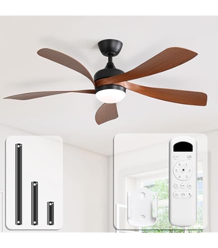 Installation facile, compatible avec différentes hauteurs de plafond. Moteur CC réversible et silencieux pour une utilisation toute l'année : le moteur CC réversible intégré permet au ventilateur de souffler de l'air frais vers le bas en été et de faire circuler l'air chaud du plafond vers le bas en hiver, ce qui aide à économiser de l'énergie. Si vous avez des questions ou des problèmes, veuillez contacter notre service client à tout moment, qui se fera un plaisir de vous aider. Lorsque l'appareil est éteint, l'appareil enregistre automatiquement vos paramètres. Depuley Ventilateur de plafond extérieur silencieux avec éclairage - Ventilateur LED de 132 cm - Convient pour le salon, la salle à manger, les bureaux et les vérandas de jardin extérieures - Améliorez votre climat intérieur, profitez d'un confort intelligent - Ce ventilateur de plafond moderne avec éclairage est le choix idéal pour votre décoration intérieure. [Service client de qualité] Le ventilateur de plafond avec lumière a passé la certification de sécurité pour s'assurer que le ventilateur est sûr à utiliser. Il convient également aux plafonds inclinés (≤ 15°) et est compatible avec les supports de montage au plafond. Télécommande multifonction et contrôle par application : le plafonnier de qualité supérieure avec ventilateur dispose de 3 fonctions de minuterie (1/2/4 heures), de 6 vitesses de vent et de 3 options d'éclairage : lumière chaude (3000 K), lumière du jour (4000 K) ou lumière froide (6500 K). Les instructions d'installation claires permettent un montage rapide et facile. Remarque : 2 piles AAA 1,5 V ne sont pas incluses Télécommande App Contrôle Moteur CC Depuley Ventilateur De Plafond Silencieux Avec éclairage: Lampe LED Avec Ventilateur Pour Jardin Terrasse - 132CM Grand Ventilateur De Plafond Avec Lumière Et APP Pour Salon Restaurant Bureau, Marron Plafonnier Salon Salle à Manger Mettez à jour votre pièce : ce ventilateur de plafond moderne est livré avec une télécommande intelligente pour ajouter une touche de charme rustique à votre maison Avec des instructions claires pour une installation rapide et facile. S'adapte à n'importe quelle décoration de pièce : le ventilateur de plafond moderne à 5 pales se marie parfaitement avec n'importe quel décor, que ce soit dans le salon, la chambre, la cuisine, le bureau, le bureau ou d'autres petits espaces intérieurs Certification de sécurité et excellent service client : ce ventilateur de plafond avec éclairage est certifié selon les normes de sécurité les plus élevées pour garantir une utilisation sûre. Moteur CC commutable et silencieux : grâce à la possibilité de changer la direction du flux d'air, cette lampe avec ventilateur peut être utilisée toute l'année en passant d'un flux d'air vers le bas en été à un flux d'air vers le haut en hiver pour récupérer la chaleur perdue par le plafond et réduire les coûts énergétiques. Remarque : 2 piles AAA 1,5 V non incluses. Ventilateur de plafond extérieur en bois sans lumière Le ventilateur dispose d'une fonction minuterie (1/2/4 heures), et le ventilateur et la lumière peuvent être contrôlés séparément. Le niveau sonore est inférieur à 35 décibels, ce qui crée un environnement calme et agréable, idéal pour toutes les saisons. Le ventilateur de plafond d'extérieur fonctionne avec moins de 35 décibels Équipé d'une télécommande intelligente et d'un contrôle par application, il offre la solution parfaite pour la circulation de l'air et l'éclairage.