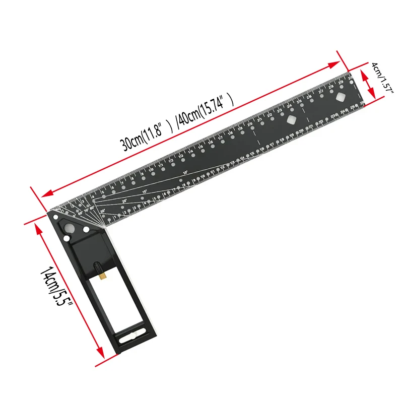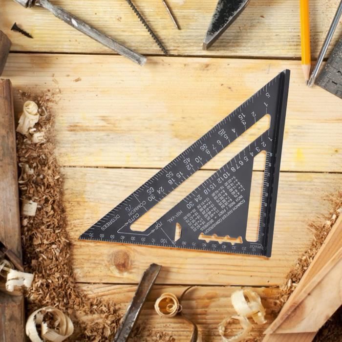 SURENHAP règle de rapporteur Règle triangulaire noire pour le travail Equerre Charpentier Règle Triangulaire De 17,8 Cm Polyvalente En Aluminium, Outil Equerre Ecole Lot de 2 règles triangulaires pour menuiserie de 17,8 cm et 30,5 cm – Équerre multifonction avec système métrique, outil à angle droit pour travail du bois (A Règle pliante polyvalente Règle triangulaire pliante en alliage d...