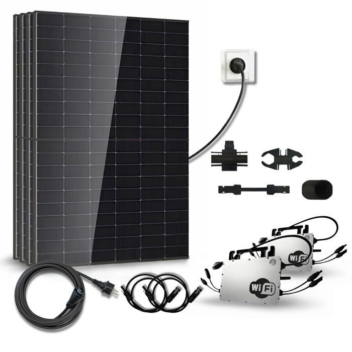 2 ans sur le câble AC Plug & Play HMS 5 m - 1,5mm² Kit Autoconsommation Plug And Play KIT SOLAIRE 2000W BIFACIAL - PLUG&PLAY Avec Fixation - HOYMILES AP5-Pack 2298-de Ecoflow Delta 2 Le micro-onduleur Hoymiles HMS-1000W-2T transforme ce courant continu en 230 V alternatif, directement injecté dans le réseau domestique via le câble AC Plug & Play HMS 5 m - 1,5mm² fourni. Kit compact ne dépassant pas 1 kWc, aucun raccordement compliqué nécessaire. Avantages du kit solaire Plug & Play 1000Wc Wi-Fi : Maximise votre confort énergétique grâce au panneau bifacial qui produit même par temps nuageux. Production estimée jusqu’à 1526 kWh/an et des économies annuelles d’environ 384 EUR, pour un retour sur investissement rapide. 2 ans sur le lot de 4 rallonges MC4 Staubli Lot de 4 rallonges MC4 Staubli inclus pour une installation flexible et adaptée à votre environnement. Avec une puissance de sortie de 1000W et 2 entrées MPPT indépendantes, il permet de connecter et suivre deux panneaux solaires distincts, maximisant ainsi le rendement même en cas d'ombres partielles ou d'orientations différentes Micro Onduleur HOYMILES HMS 800 WIFI | Kit Solaire Autoconsommation Garantie premium : 25 ans produit / 30 ans performance (≥ 87,4% à 30 ans) Vous suivez la production en temps réel depuis votre smartphone ou ordinateur, simplement et efficacement. Simultanément, les appareils actifs du foyer consomment en priorité cette énergie gratuite. Pourquoi choisir ce kit Plug & Play 1000Wc Hoymiles Wi-Fi ? Idéal pour débuter l’autoconsommation sans contraintes techniques : pas de déclaration préalable, aucun consuel, ni raccordement au tableau électrique. 1000Wc – rendement 22,7% pour une production maximale L’énergie lumineuse est convertie en courant continu au cœur des cellules photovoltaïques monocristallines. L'utilisation de multiprises est interdite. Cellules monocristallines: faible dégradation, performance stable sur le long terme Il ne convient pas aux sites isolés. Kit solaire panneau 1000Wc – Micro-onduleur Hoymiles HMS-1000W-2T Wi-Fi intégré Ce kit solaire associe deux panneaux bifaciaux TrinaSolar 500Wc à un micro-onduleur Hoymiles HMS-1000W-2T avec Wi-Fi intégré. Kit évolutif, jusqu’à 4 panneaux maximum par prise. Grâce à la connexion Wi-Fi intégrée, les données de production sont transmises sans passerelle à l’application S-Miles Cloud. À savoir Les économies indiquées sont basées sur une consommation immédiate de l'énergie produite. Garantie 25 ans sur le panneau photovoltaïque TrinaSolar 500Wc Nouveau Deye Micro onduleur solaire 1000w SUN M100G3 EU Q0 pour balcon photovolt Ce kit peut alimenter simultanément un réfrigérateur, une box internet, des éclairages LED, ou un lave-linge en cycle éco, selon les heures d’ensoleillement. 12 ans sur le micro-onduleur Hoymiles HMS-1000W-2T