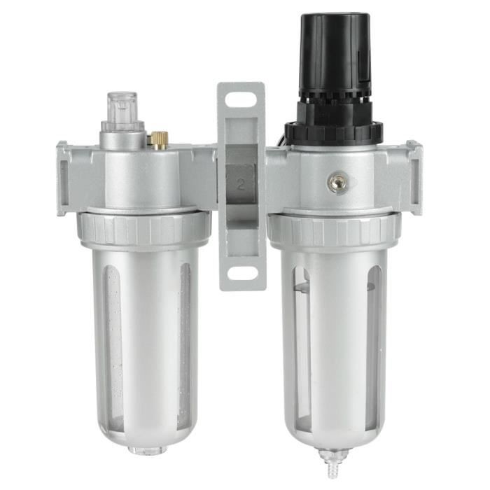 Régulateur De Pression D'air Trois Voie Valve 175psi 12bar 1 4 Pouce 160 Filtre Régulateur Aluminium Outils Pneumatiques Régulateur De Filtre BSP 1,27 Cm, Filtre à Air Pneumatique En Aluminium Combo Controleur Piggyback Accessoire Air Comprimé Professionnel Fabriqué en aluminium de haute qualité, plus résistant que les aluminiums ordinaires et plus Spécifications :Caractéristiques :Fabriqué en aluminium de haute qualité, plus résistant que les aluminiums ordinaires et plus encore. Avec le bouton de contrôle de pression réglable, vous pouvez tirer vers le haut et tourner le bouton noir en haut du régulateur pour régler la pression souhaitée. Grande polyvalence de taille universelle] Ce régulateur de pression de filtre à piège à eau et d'humidité de compresseur d'air a une entrée universelle BSP1/2 "qui convient à la plupart des outils et équipements à air comprimé, il peut fonctionner de 5 ~ 60 ℃ et sous une pression de 1Mpa Cela rendra votre travail plus précis. 3/4 & BSP Air Pression Régulateur Filtre & Lubrificateur Unité EUR 127,10 - PicClick FR Spécifications : Matériau : aluminium + PC + plastiqueCouleur : ArgentEntrée d'air : BSP1/2Pression . Ce régulateur de filtre à air peut éliminer les particules solides et les condensats avec de l'air comprimé et préparer l'air correctement pour de nombreux types d'outils et d'équipements à air comprimé.