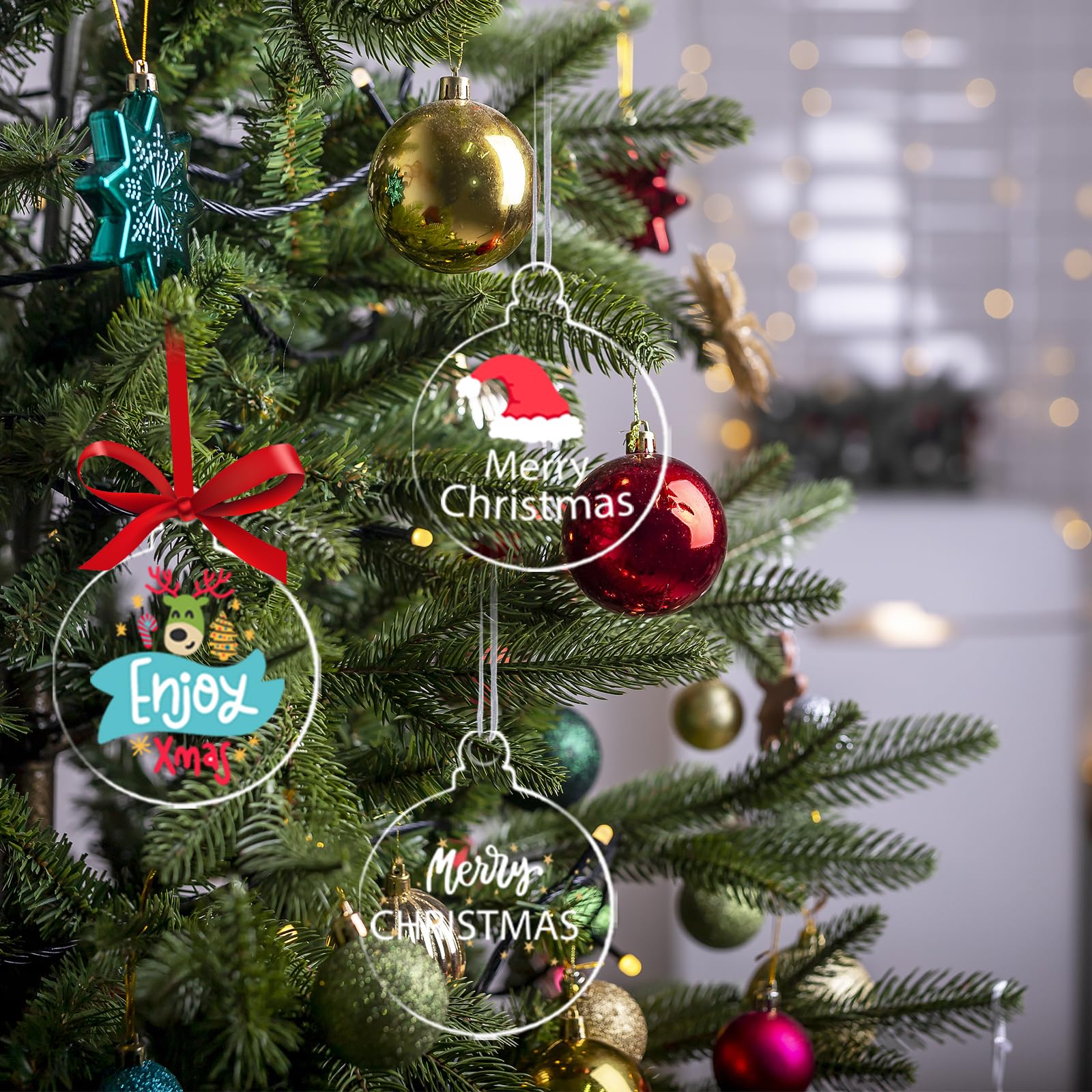 Accrochez les décorations de Noël sur le sapin de Noël, la fenêtre, la porte, le couloir, la salle à manger, la chambre, le salon et les décorations de fête à la maison. Cadeau parfait et décoration pour Noël, mariage, fiançailles, anniversaire, Saint-Valentin, anniversaire, fête prénatale, premier Noël, fête prénuptiale, Thanksgiving, pendaison de crémaillère, fête du Nouvel An Ce design unique ne peut être vendu que par nous. Livré avec une ficelle pour une suspension facile. Ils vont absolument l'adorer Idée Cadeau Noël Personnalisé Disques En Acrylique Transparent - Ornements De Noël En Verre Ornements Sapin Acrylique Transparent Good Wishes for Christmas Motifs exquis et charmants, éléments spéciaux, souvenons-nous du moment mémorable qui s'est passé cette année. Beau motif : imprimé avec des images haute définition et délicates. Cadeau parfait et décoration pour Noël, mariage, fiançailles, anniversaire, Saint-Valentin, anniversaire, fête prénatale, premier Noël, fête prénuptiale, Thanksgiving, pendaison de crémaillère, fête du Nouvel An. Nous espérons que cette décoration peut guérir votre cœur et vous rendre plein d'énergie. Décoration de premier Noël personnalisée pour bébé 2023, cadeaux personnalisés pour le premier Dimensions : diamètre de la décoration ronde d'environ 8 cm, décoration papillon d'environ 7,6 x 10,2 cm. Quantité généreuse : vous recevrez 50 décorations de Noël en acrylique. Vous pouvez les attacher avec de la ficelle ou du ruban (non fournis) pour décorer votre sapin et créer une ambiance de Noël féérique.Faciles à utiliser : ces disques en acrylique transparent sont fabriqués en acrylique de haute qualité et sont percés pour une fixation aisée aux porte-clés. Laissez libre...