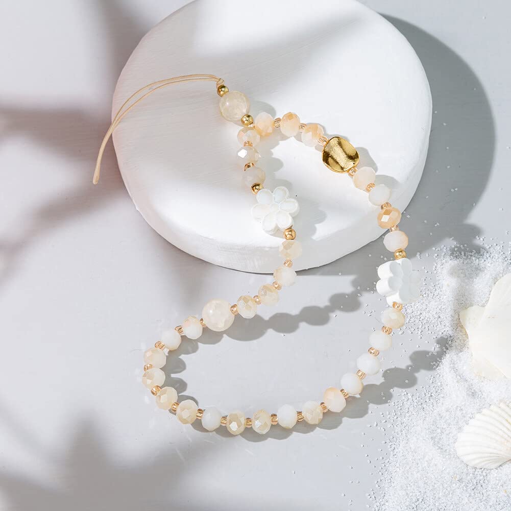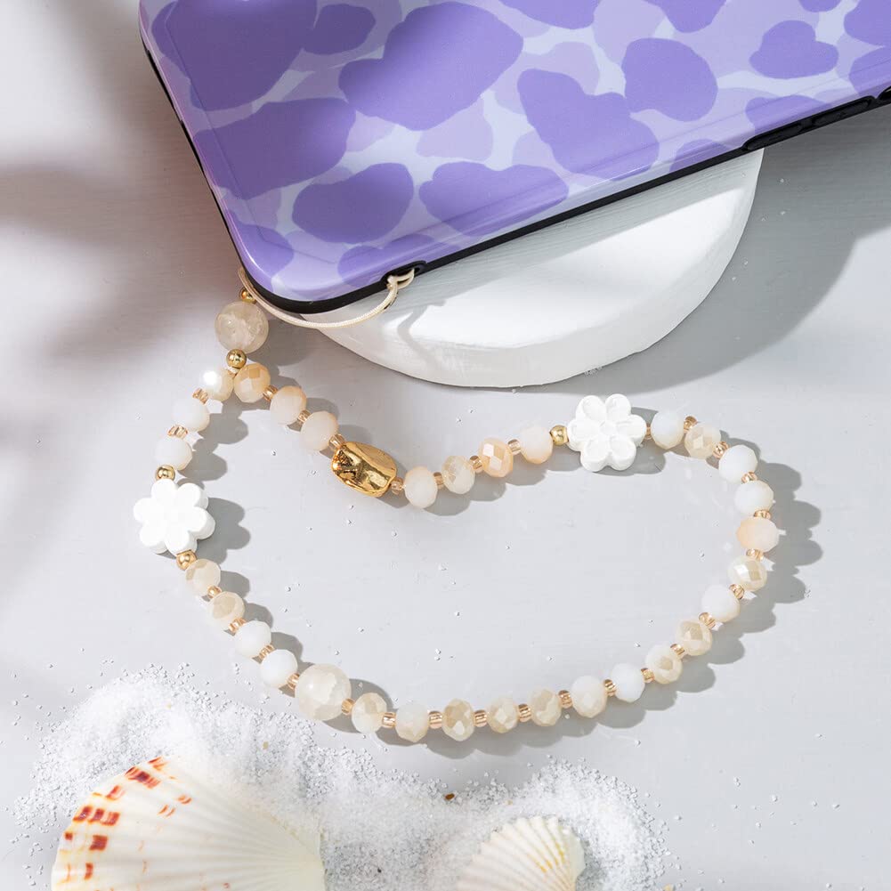 Taille : la longueur du bracelet de téléphone portable fleur est de 12 cm, le poids est de 13 g. Matériau : le beau charme de téléphone est fait de perles artificielles en acrylique + perle, et perlé avec une corde solide. Design unique : la couleur de la chaîne de téléphone est jaune, vert, rose, violet, bleu, orange et autres couleurs. Cordon de poignet pour téléphone portable, perles florales, cordon Breloques de téléphone pour femmes : le bracelet floral fait de grands cadeaux pour toutes les occasions, la fête des mères, les anniversaires, la Saint-Valentin, les anniversaires, les mariages et plus encore. Breloque pour téléphone - les cordons en perles et papillons peuvent répondre aux besoins de correspondance des couleurs de différents étuis de téléphone et peuvent également facilement correspondre à votre style vestimentaire, cordon de téléphone en perles Accessoire Mode Téléphone Cadeau Cordon De Téléphone Portable - 1 Cordon Court Avec Perles Pour Porte-clés, étui De Téléphone, Pendentif Floral, Bricolage - Blanc Cadeau Saint-Valentin Anniversaire La chaîne de téléphone portable peut être utilisée pour décorer votre téléphone portable, ou accrocher sur des clés, des accessoires d'appareil photo CCD, des cartes, des sacs d'école, ou accrochée au mur comme décoration