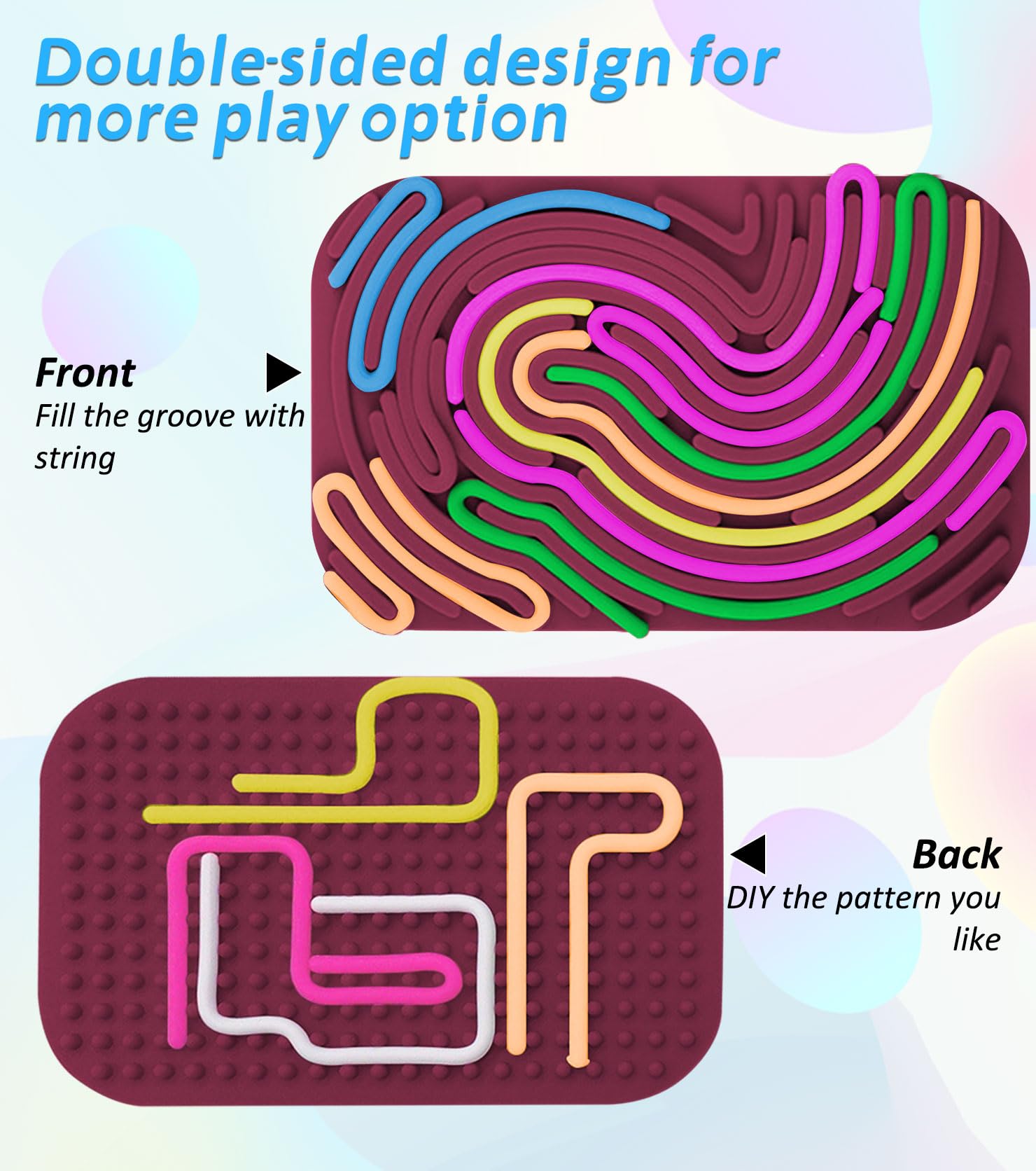 Portable et Pratique La planche d'activité sensorielle est portable et convient pour les voitures, les avions, les restaurants et bien d'autres endroits, et apporte joie et concentration aux personnes de tous âges. Tableau d'Activité Sensorielle la planche sensorielle offre des couleurs vives et des effets visuellement attrayants, avec des plaques en silicone double face complexes et 20 cordons en silicone colorés. Soulage efficacement le stress et l'expérience apaisante : cette planche sensorielle interactive aide à soulager le stress et l'anxiété grâce à ses éléments tactiles apaisants et à ses activités apaisantes 5 règles d'or pour se concentrer avec un TDAH Panneau sensoriel Gardez votre enfant loin des écrans électroniques et favorisez sa capacité de concentration. Planche d'activité Sensorielle, Jouet Apaisant en Silicone pour La surface lisse sans bavures assure un toucher confortable et sûr pour les enfants, à la fois sûr et durable. Portable et pratique : la planche à jouets sensoriels offre des couleurs vives et des effets visuellement attrayants, avec des plaques en silicone double face complexes et 20 cordons en silicone colorés. Jouet Anti Stress TDAH Autisme Planche D'Activité Sensorielle, Pour L'Autisme, L'Anxiété Du Accessoire Calme Anxiété Sans écran Planche d'activité sensorielle Laissez vos enfants jouer partout et partager avec des amis. Description du produit Jouet Sensoriel Favorise la définition et la concentration La planche sensorielle fidget board est un excellent entraînement pour le toucher, la vision et l'ouïe, l'équilibre et la perception spatiale. Les jouets sensoriels stimulent notre curiosité et notre créativité.