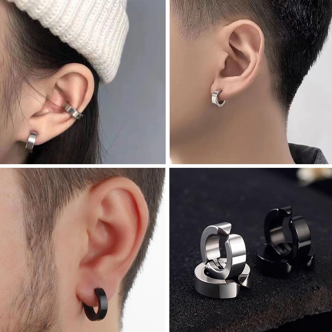 GGUFAY 4 Paires Non-Piercing Boucles d'oreille Clip d'oreille Faux Boucle D'oreille Acier Inoxydable COYUN 6 Pièces Non-Piercing Boucles D'Oreille Clip D'Oreille Faux Bijou Clip Pour Homme Femme Ils constituent un magnifique cadeau d'anniversaire, d'anniversaire de mariage, de Thanksgiving, de Nouvel An ou de fête des mères pour vos amis, votre famille, votre partenaire et vos proches. COYUN 6 Pièces Non-Piercing Boucles D'Oreille Clip D'Oreille Faux Anneaux D'Oreille Pour Hommes Et Femmes,Boucle D'Oreille Homme, Fausse Boucle D'Oreille Homme, En Acier Inoxydable, 2 Couleurs ENSEMBLE ÉCONOMIQUE: Ces boucle d'oreille homme sont disponibles en noir et argent, avec 3 modèles différents, 3 pièces de chaque couleur, soit 6 pièces au total, pour répondre à vos différents besoins quotidiens, mettre en valeur votre charme et vous valoir davantage de compliments. Achetez COYUN 6 Pièces Non-Piercing Boucles D'Oreille Clip D'Oreille Faux Anneaux D'Oreille Pour Hommes Et Femmes,Boucle D'Oreille Homme, Fausse Boucle D'Oreille Homme, En Acier Inoxydable, 2 Couleurs. Livraison gratuite sur une sélection d'articles dès 25€ d'achats TAILLE UNIVERSELLE: Ces boucle oreille sans trou sont facilement ajustables et s'adaptent à vos oreilles de manière sûre et confortable. Les fausse boucle d'oreille homme à clip sont une alternative populaire pour ceux qui souhaitent porter des boucles d’oreilles sans trou. Elles se fixent fermement sur le lobe grâce à un mécanisme de clip, offrant ainsi un port sûr et stable tout au long de la journée LE CADEAU IDÉAL: Ces faux piercing oreille conviennent aussi bien aux hommes qu'aux femmes et peuvent enrichir votre style quotidien. MATÉRIAUX DE QUALITÉ SUPÉRIEURE: Ces fausse boucle d'oreille homme sont fabriqués en acier inoxydable de qualité supérieure, durable, résistant à la rouille et solide, avec une surface lisse qui ne raye pas la peau et offre un confort optimal.