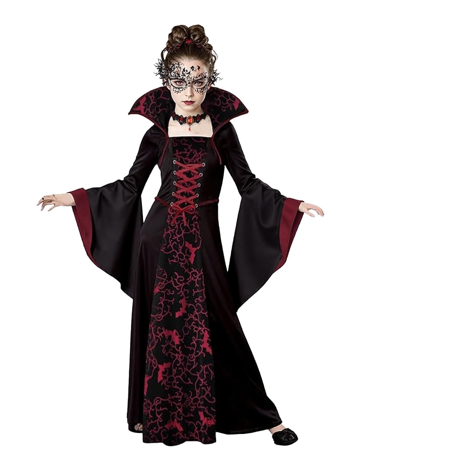 Cadeau parfait – costume de vampire pour fille – Une excellente idée de cadeau pour Halloween ou le carnaval. Costume Reine Vampire Costume De Vampire Pour Fille - Costume D'Halloween Pour Fille Deguisement Fille Halloween Vampire Polyvalent – robe gothique fille – Idéal pour Halloween, soirées déguisées, fêtes gothiques, anniversaires, cosplay, spectacles ou carnavals. Description du produit Axingqiwu Costume de vampire d'Halloween pour fille - Costume de reine - Robe de vampire gothique pour enfant - Robe de vampire gothique - Cosplay Avertissement De Sûreté Numéro En le portant, votre enfant se transformera en un petit vampire mystérieux et stylé, devenant la star de la fête. Élégant costume de vampire pour fille – Cet ensemble comprend une magnifique robe de vampire pour fille et un collier avec pendentif en rubis. En le portant, votre enfant se transformera en un petit vampire mystérieux et stylé, devenant la star de la fête Tissu doux et confortable – déguisement vampire fille – Confectionné dans un tissu de haute qualité, léger et respirant, agréable au toucher et non irritant. Costume de vampire pour fille - tout pour la fete ! taille 7 Le col peut se replier librement pour s’adapter à différents accessoires et révéler un style unique. Élégant costume de vampire pour fille – Cet ensemble comprend une magnifique robe de vampire pour fille et un collier avec pendentif en rubis.