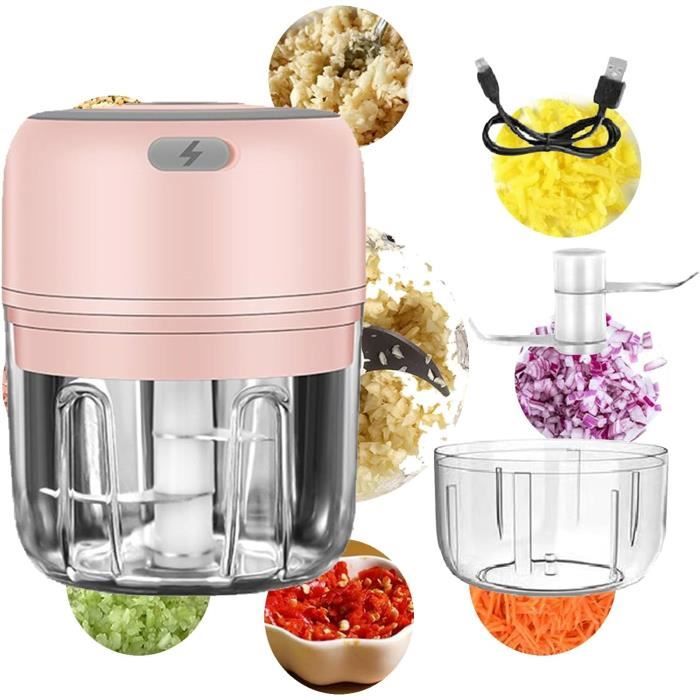 Capacité : 100 ml/250 ml en option. EN STOCK : Mini hachoir électrique 250ml, petit mixeur electrique rechargeable pour oignon, ail, viande, légumes pas cher - Retrait & Livraison - Paiement 4X disponible Caractéristiques : Matériaux : polypropylène et acier inoxydable. Chargement USB portable : batterie intégrée de 1200 mAh, peut fonctionner pendant une longue période, interface de charge USB, chargement pratique à tout moment et n'importe où. Imperméable et facile à nettoyer, étanche IPX8, le hachoir à oignons peut être lavé directement après utilisation. Il est fabriqué en ABS de qualité alimentaire, PC et acier inoxydable 304., Il n'a pas d'odeur particulière. Il est très approprié pour les petits travaux, tels que hacher l'ail, le gingembre, le poivre, les carottes, les légumes, les oignons, les noix, etc. Hachoir multifonction efficace et pratique] Ce puissant coupe-ail et oignon peut vous aider à traiter tous les légumes et fruits, à préparer facilement des vinaigrettes, du pesto, etc., et à garder la surface de la cuisine propre Couleur : bleu/rose en option. Hachoir A Main Coupe-légumes Portable 4 En 1 Mini Hachoir à Ail électrique Robot Culinaire Sans Fil Coupe Ail Mini hachoir à ail électrique, mini robot culinaire pour couper les légumes/ hachoir à viande/chooper à l'ail/presse-purée à fruits/broyeur à salade acheter à prix bas - livraison gratuite, avis réels avec des photos Contenu : 1 mini ail électrique Taille : S/L en option. Petite taille : 9,5 x 9,5 x 11,5 cm, 100 ml. Grande taille : 13,5 x 9,5 x 9,5 cm, 250 ml. Capacité de la batterie : 1200 mAh., Puissance : 30 W.