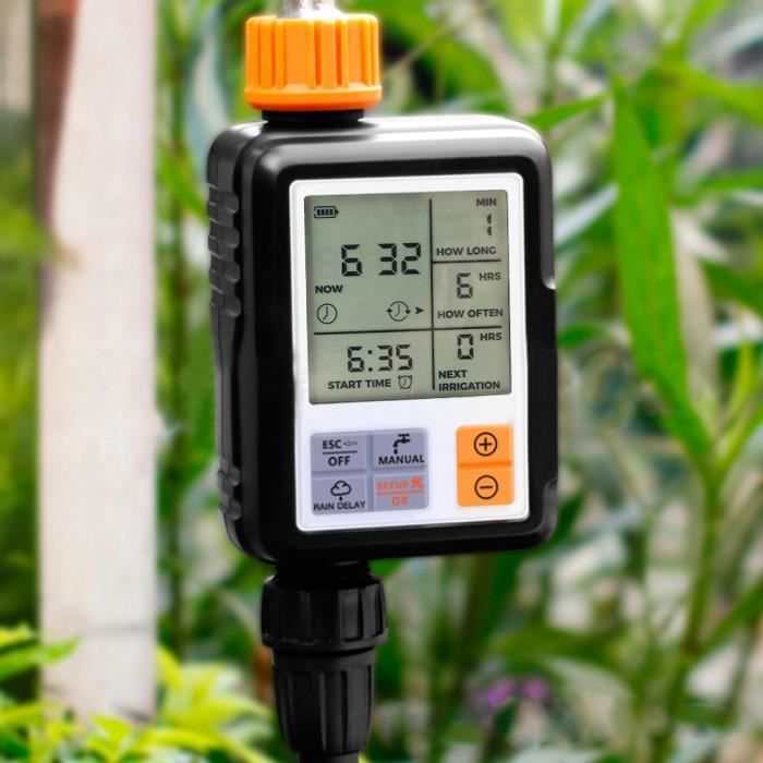 Un simple clic suffit pour activer le mode retardé, pratique et facile à utiliser. Le programmateur d'arrosage automatique peut être utilisé avec de l'eau du robinet ou de l'eau comprimée pour l'arrosage des fermes, jardins, pelouses, massifs de fleurs et irrigation verticale Programmateur Arrosage Automatique, Minuterie Arrosage Automatique Pour Jardin, Ip55 éTanche, SystèMe D'Arrosage Automatique Pour L'ExtéRieur Jardin Pelouse Suivez l'arrosage et les enregistrements d'arrosage en temps réel. Gestion facile : gérez facilement votre arrosage, où que vous soyez. L'appareil peut programmer des arrosages et des intervalles entre chaque arrosage. En mode arrosage programmé, vous pouvez régler la durée et la quantité d'arrosage. Programmation d'arrosage facile via l'application : arrosez parfaitement vos plantes à chaque fois. L'appareil peut programmer des arrosages et des intervalles entre chaque arrosage Alimentation solaire continue pendant 365 jours : Ce programmateur d'arrosage intelligent Wi-Fi est compatible avec le chargement USB Type-C et le chargement solaire, ce qui permet de l'utiliser même par temps sombre. Minuterie Arrosage Automatique, Programmable Numérique Robinet De Tuyau Minuterie Intelligent Arroseur Contrleur De Systme Darrosage Dirrigation Pour Jardin Ferme Pelouse Fleur1 54025934 Programmateur D'arrosage Castorama TRJZWA Programmateur Arrosage Automatique Avec 3 Sorties,Tuyau Irrigation Chronométré,Arrosage Automatique Pour Jardin ,Système De Minuterie D'irrigation Numérique Étanche IP55 Pour Jardin/ Pelouse Programme D'arrosage Selon les conditions météorologiques, vous pouvez choisir de le retarder de 24, 48 ou 72 heures. Son panneau solaire inclinable et orientable jusqu'à 30 degrés permet une meilleure absorption de la lumière du soleil, réduisant ainsi les besoins énergétiques et les coûts. Télécommande via application/commande vocale/commande manuelle : Contrôlez l'appareil à distance où que vous soyez et à tout moment grâce à une connexion Wi-Fi. Le programmateur est compatible avec Alexa et Google Assistant. Mode retardéen cas de pluie : évitez les arrosages excessifs grâce à une configuration facile : activez ce mode vous-même.