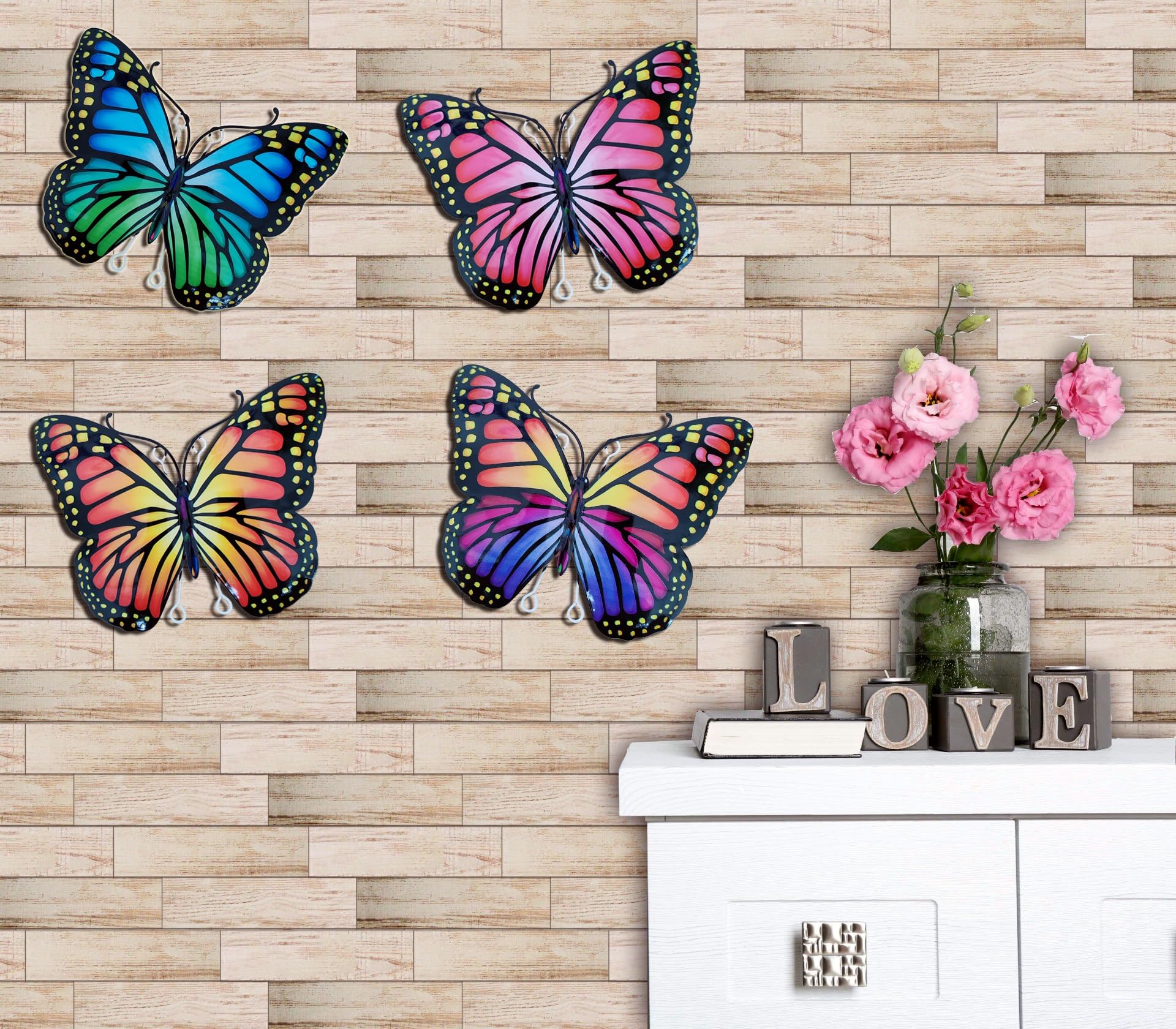 Ils sont parfaits pour la décoration des murs intérieurs/extérieurs et des clôtures de jardin. APPLICATIONS : Les décorations murales papillon en métal offrent de nombreuses possibilités. Vous pouvez les utiliser pour décorer une chambre, un salon, un jardin, une cour, une clôture de terrasse et à peu près n'importe où Design unique et engageant Avec un corps charmant, ces décors muraux de papillon ajoutent instantanément une ambiance ludique et fantaisiste. Facile à accrocher : L'art mural papillon en métal est doté de 2 trous de crochet à l'arrière, ce qui vous permet de l'accrocher, de l'enlever ou de le repositionner facilement sans avoir besoin de clous ou de vis. Elle peut laisser une impression profonde lors de toute journée inhabituelle comme la fête des mères, la fête des pères, Thanksgiving, le jour de l'an, l'anniversaire, Noël, la pendaison de crémaillère, etc. 4 sculptures de poissons multicolores (rouge, vert, jaune, violet) illumineront votre intérieur. Cadeau parfait pour la famille et les amis ou les êtres chers à l'occasion de toute journée inhabituelle comme la fête des mères, la fête des pères, Thanksgiving, le jour de l'an, l'anniversaire, Noël, la pendaison de crémaillère, etc. Lot De 3 Crochet Mural En Acier Inoxydable, Crochets Papillon Porte Art mural papillon en métal : il y a 4 décors muraux papillons colorés, fabriqués en fer durable. Regardez-les prendre vie et apporter de la joie et du caractère à votre espace de vie. Cet art mural papillon en métal est parfait pour la décoration intérieure comme le salon, la chambre à coucher, le bureau, et pour la décoration extérieure comme la clôture, le porche, le mur du jardin, la porte. Comprend 4 papillons en métal magnifiquement conçus de différentes couleurs et motifs. · Fabriqué en métal de haute qualité antirouille avec finition peinte à la... Papillon Décoratif Couleurs Vives Lot De 4 Décorations Murales En Métal En Forme De Papillon Cadeau Décoration Murale Facile à accrocher Le trou d'accrochage au dos vous permet d'accrocher l'art mural papillon extérieur n'importe où avec seulement des clous ou des vis.