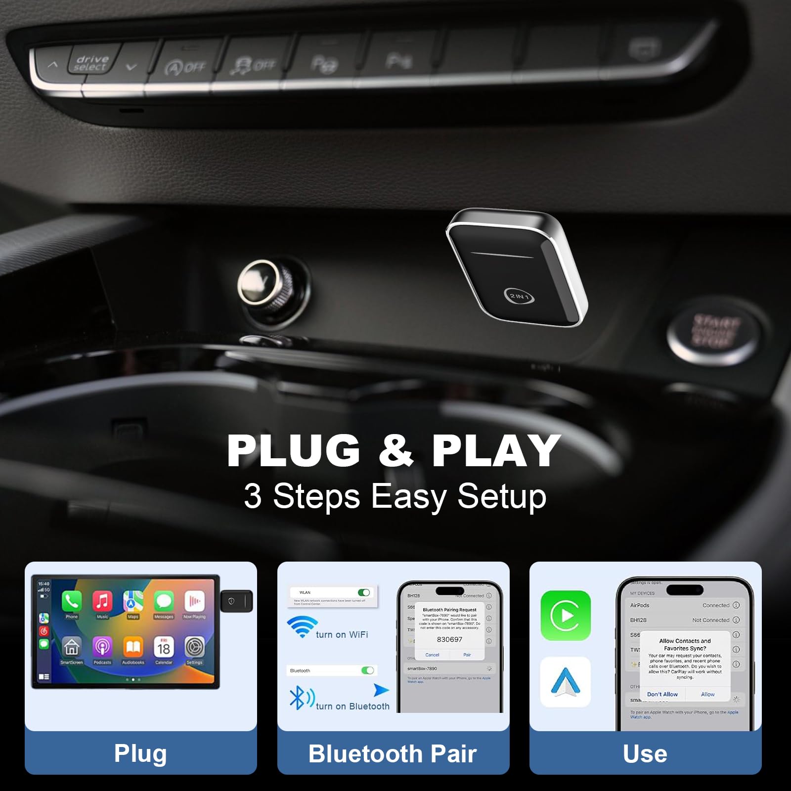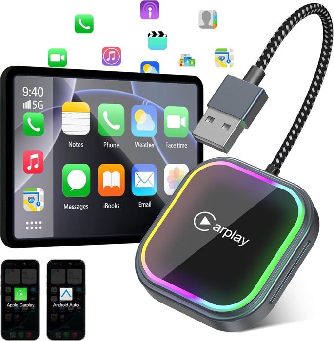 Gardez l'appareil loin des autres appareils sans fil pour éviter les interférences. Compatibilité étendue avec les voitures de 2016 et plus] Cet adaptateur CarPlay sans fil pour iPhone fonctionne avec la plupart des véhicules de 2016 et plus équipés de CarPlay filaire d'origine 【Connectivité sans fil rapide】: alimenté par la technologie avancée Bluetooth 5., 0 5G, connectez sans effort votre iPhone au système d'infodivertissement de la voiture sans câble. Commencez à profiter des fonctionnalités intelligentes de CarPlay dès que vous démarrez le moteur. 【Large compatibilité】: fonctionne avec les voitures fabriquées en 2016 et ultérieures, et est entièrement compatible avec iPhone iOS 10 et supérieur. Car Play Sans Fil Autonano Adaptateur USB Carplay Sans Fil, Adaptateur Automatique Android, Facile Plug & Play, Compatible Avec Les Voitures U00e0 Partir De 2016 Et IPhone Android Phone 2024 Mise U00e0 Profitez d'un appariement instantané pour une expérience sans décalage, améliorant la commodité et la sécurité de conduite en éliminant l'encombrement des cordons. 【Performance continue via les mises à jour OTA】: prend en charge les mises à jour Over-The-Air (OTA), vous permettant d'accéder aux dernières fonctionnalités et optimisations. Gardez une longueur d'avance avec une compatibilité parfaite entre les systèmes iOS et votre véhicule, assurant un fonctionnement fluide et stable. 【 Plug & Play Simplicité 】 : aucune configuration complexe requise. ATOTO CB6C Adaptateur CarPlay sans fil, Android 13, GPS, IA, 4G, 64Go 【Connexion automatique intelligente】: dispose d'une fonction de connexion automatique intelligente. Installez notre adaptateur sans fil compatible CarPlay dans le port USB, activez le Bluetooth de votre téléphone, connectez-vous au nom Bluetooth correspondant, attendez quelques secondes et vous serez connecté à l'interface CarPlay