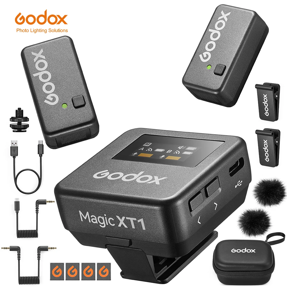 Interface à écran Tactile: Godox Magic XT1 microphone sans fil est doté d'un écran tactile OLED et de boutons intuitifs, ainsi que d'une prise casque de 3,5 mm, pour un réglage précis et un contrôle en temps réel sans effort dans tous les scénarios d'enregistrement Portée sans fil maximale de 200m et autonomie de 16 heures: Avec une fréquence sans fil de 2,4 GHz et une portée de transmission maximale de 200 m, la distance ne limitera plus vos créations. GODOX Magic XT1 Microphone de Lavalier sans Fil pour caméra, Android, PC, 48kHz/24-bit Audio, récepteur Tactile, Suppression du Bruit, 2.4G Portée sans Fil 200m pour TikTok Vlog Youtuber Avec les câbles TRS 【Note】Lightning Device : câble 3,5 mm vers Lightning GAC-IC10 vendu séparément. Mono/Stereo/Safety Track & Intelligent Noise Cancellation: Crafted with top-notch acoustic technology, Magic XT1 boasts premium microphone components delivering impressive 48kHz/24bit Hi-Res audio with a 70dB SNR and a Max., 115dB SPL. Magic XT1 provides 3 recording modes – Mono/Stereo/-6dB Safety Track, presenting high-quality audio capture and added security for various applications. Le dernier système d'enregistrement audio sans fil à pince de Godox est équipé de deux micros longue portée capables de produire un son Hi-Res impressionnant. De plus, le récepteur 2-en-1 du Magic XT1 dispose de son propre écran OLED qui permet de contrôler et de surveiller l'audio en temps réel Godox Magic XT1 : Un Nouveau Système De Microphones Sans Fil Avec Recepteur A Ecran Tactile Oled.832856.0 Petit et Portable: Le récepteur peut stocker et charger deux émetteurs, Magic XT1 micro sans fil présente une nouvelle apparence révolutionnaire avec une structure émetteur dans récepteur pour le chargement et le stockage des deux TX dans un seul RX, la portabilité et la haute performance, vous permettant de tenir l'ensemble du système dans une seule main facilement. L'émetteur offre une autonomie d'environ 8 heures et l'ensemble du système alimenté par le RX prend en charge jusqu'à 16 heures d'enregistrement, ce qui en fait un excellent équipement mobile pour la création de contenu. Le Magic XT1 est également compatible avec les normes USB Audio Class (UAC), Si vous devez vous connecter à un ordinateur, connectez le port USB-C du récepteur au port de l'ordinateur via le câble USB-A vers USB-C, et sélectionnez Magic XT1 pour l'entrée sonore sur l'ordinateur pour l'utiliser.