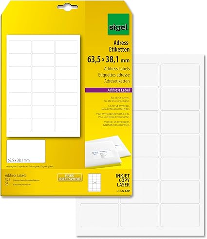 Grâce à la micro-perforation ultra fine, les étiquettes se détachent facilement de leur support A4 sigel Etiquettes pour rayonnages, 105 x 38 mm, blanches, MP, Compatibles avec imprimantes jet d'encre, laser et copieurs WINNIE THE POOH különleges kiadású zenedoboz, 6,3 cm x 5,1 cm x 3,8 cm Un logiciel gratuit d´aide à la mise en page est disponible sur le site web du fabricant Lot de 420 étiquettes pour étagère 10,5 x 3,8 cm Blanc // Format d'impression : A4 (21 x 29,7 cm) // Poids du papier : 52,1 kg; Motif étiquettes Pour Rayonnages SIGEL Sigel LP725 Étiquette à Insérer Pour Dossier Suspendu 58 Mm X 18 Mm 523847 étiquettes Micro-perforées A4 Pour imprimante jet d'encre/laser et copieur, papier spécial logiciel inclus pour étiquette de prix et de scanner, microperforation, sur 30 feuilles A4