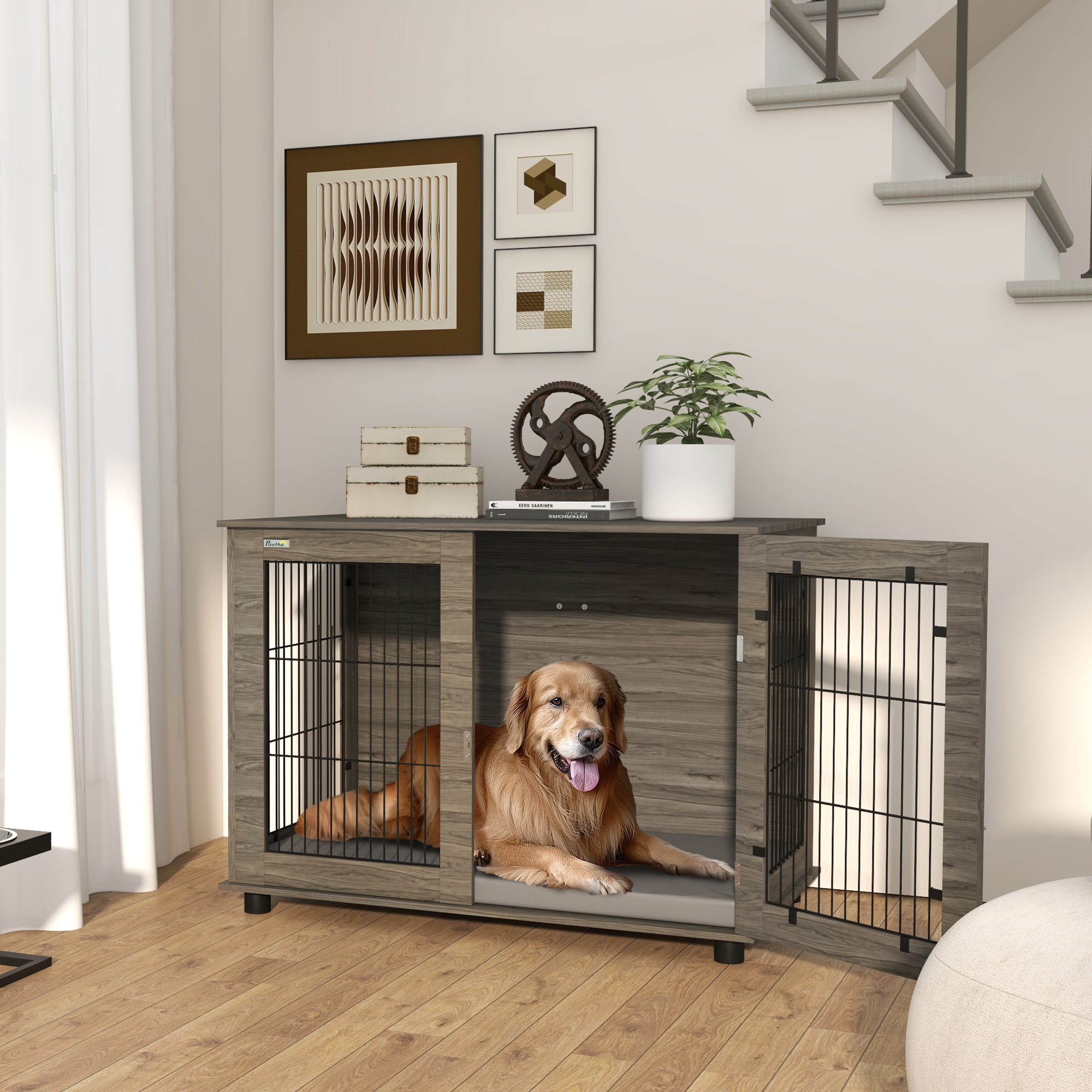 CAGE ÉLÉGANTE & ORIGINALE : cage sur pied pour chien style contemporain idéale pour ajouter une touche d'originalité et d'élégance supplémentaire à votre intérieur - Cage très élégante tricolore noir aspect bois gris et blanc avec jolie mixité des matériaux (acier, métal chromé, aspect bois) : plus de raffinement par rapport à une cage classique en plastique et métal PawHut Meubles de caisse pour chien avec panneau de séparation, meuble TV en bois, chêne | Home Depot Canada PawHut Cage pour Chien Meuble Cage Chien intérieur Table d'appoint Multi-usages avec Double Porte et Coussin - Niche pour Chien Moyenne et Grande Taille - 90 x 58 x 65 cm, Aspect Marron Visiter la boutique PawHut 4,6 (78 coussin en tissu oxford inclus. Refuge pour animaux de compagnie Véritable maison cosy et confortable pour vos amis à quatres pattes, offrez leur tout le confort dont ils ont besoin. Grande cage confortable sur pied pour chien ou autre animal Votre chien sera confortablement installé (cage grande taille. MATÉRIAUX DE QUALITÉ : cage pour chien ou autre animal en acier robuste et panneaux de particules - Piètement métal chromé avec extrémité caoutchouc de nivellement antidérapant : stabilité optimum, aucun risque de rayure de votre sol - Montage facile, rapide grâce à la notice d’assemblage illustrée fournie Offrez à vos animaux de compagnies tout le confort et le bien-être qu’ils méritent. Cage Gris 90x58x65 PawHut Cage Pour Chien Cage De Chien Sur Pied Avec Coussin Amovible Niche Chien Intérieur Cage très élégante tricolore noir aspect bois clair et blanc avec jolie mixité des matériaux (acier et aspect bois) : plus de raffinement par rapport à une cage classique en plastique et métal GRAND COUSSIN INCLUS : Munie d'un fond agrablement rembourr, cette niche pour chien intrieur offre un espace rconfortant pour votre animal. Le coussin dtachable... Pieds avec patins réglables : stabilité optimum. ACCÈS SÉCURISÉ, CONFORT : cage idéale pour garder votre chien en toute sécurité tout confort grâce à ses 2 portes verrouillables et à son coussin déhoussable inclus Cette superbe cage pour chien sur pied en acier noir et panneaux de particules aspect bois vous permettra de mêler l'utile à l'agréable ! Idéale pour garder votre chien en toute sécurité grâce à sa porte verrouillable CAGE TABLE D'APPOINT 2 EN 1 : conception 2 en 1 : cage et table d'appoint avec plateau Pour vous offrir plus de praticité mais aussi pour répondre aux différents besoins des animaux. aucun risque de rayure de votre sol , Montage facile. Panier, niche, poulailler, parc, jouet, toilettage, sur Aosom vous trouvez tout l’équipement nécessaire pour leur créer un espace douillet.