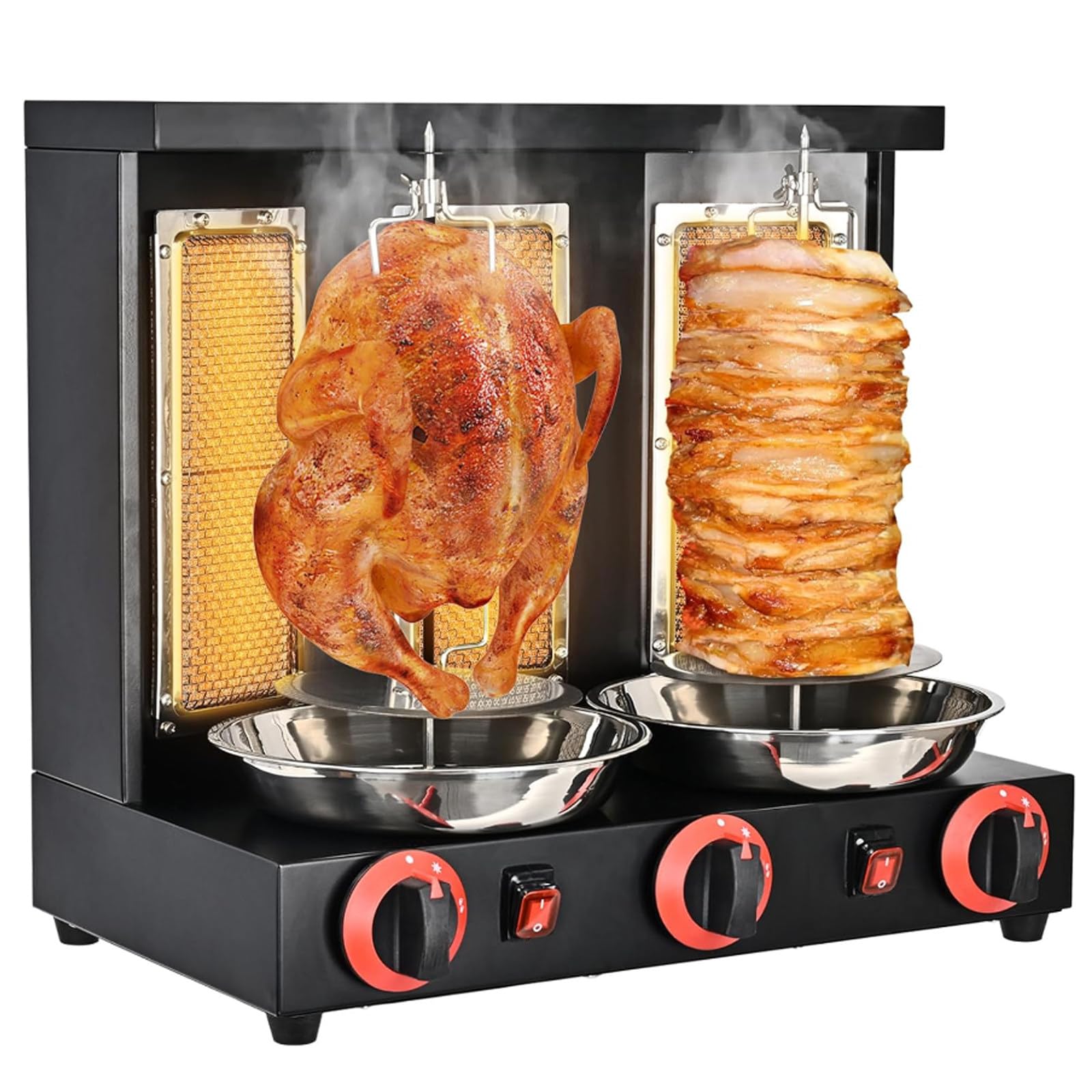 Essuyez-les avec une serviette pour les nettoyer. Paramètres techniques: Tension: 110V Puissance: 3000 W Nom: Machine à kebab à gaz Doner Modèle: CG-25 Matériel: acier inoxydable Carburant: GPL Dimensions: 295 * 300 * 480 mm Notes d'utilisation: La tension d'alimentation doit correspondre à l'appareil., 2., L'utilisation de bidons de gaz, de raccords de tuyauterie, de régulateurs doit être sûre et fiable, ne doit montrer aucun phénomène de fuite., 3., Le brûleur ne doit pas être frappé et lavé à l'eau 4., Ou longtemps après l'utilisation, pour quitter l'appareil, vous devez éteindre la source d'air (électriquement)., Comment utiliser: 1., Selon la vidéo de cuisson, en conjonction avec un grand nombre de ceux sélectionnés, l'arbre sur le gril sélectionne automatiquement la meilleure position qui est attachée à l'arbre sur le gril., 2., Ouvrez la vanne de gaz, le brûleur s'allume avec un pistolet à pointe en appuyant sur l'interrupteur du moteur de l'arbre, le voyant de contrôle, l'arbre commence à tourner., 3., La bonne nourriture de votre choix sur la ficelle au bâton de bambou sur la couverture du gril pour choisir automatiquement, pour la cuisson, vous pouvez accrocher le côté chaud du gril sur le côté, cuisson continue., 4., Produits de boulangerie et colorants alimentaires et temps de cuisson, en fonction des différents aliments et des préférences personnelles de votre choix, puis grillades et pâtisseries à partir de l'appareil., 5., L'appareil utilise la combustion de gaz lorsque les produits de boulangerie finis doivent être coupés de l'air (électriquement). Nettoyez les arrivées d'air avec une solution de nettoyage non corrosive. Machine à Kebab Acier Inox Gril À Kebab | Gril Électrique Vertical Pour Kebab, Gyros, Chachlyk Grill Electrique Petits prix et livraison gratuite dès 25 euros d'achat sur les produits ROMYIX. Commandez ROMYIX Gril de rôtisserie vertical rotatif électrique 3000W Doner Grill Kebab Grill Gyros SAMMIC - RÔTISSOIRE KEBAB-GYROS AVEC 4 BRÛLEURS EN POSITION VERTICALE Gril De Four À Rôtissoire Vertical, Four À Rôtissoire Vertical Sans Fumée, Gril Rotatif